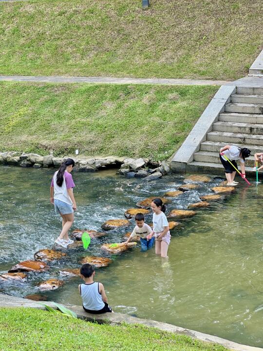 下班后来这遛弯走一圈 解压妥妥的,周末来这边放松也是很舒服 河涌两边都有树荫 有碧道,可以跑步🏃骑行🚲 沿着小河,看到有玩水,钓鱼的 草坪也多,铺个垫子就可以躺平了 离地铁也进,出站拐弯就到 这里是位于黄埔的黄陂湿地公园 地铁🚇6号线黄陂站D口 天气炎热,注意防暑,我的5点多去的,不热,小跑步了一段,感觉良好,再买份西瓜🍉,简直太舒服😌