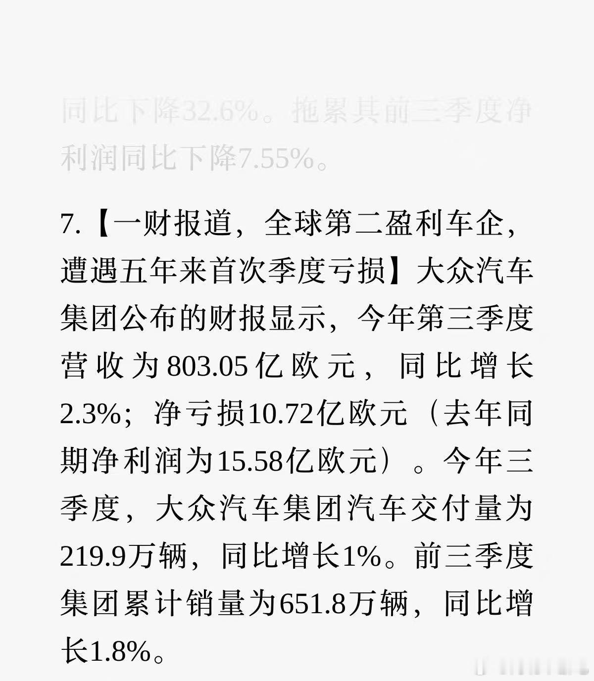 大众居然亏损了…五年来首次出现[傻眼]