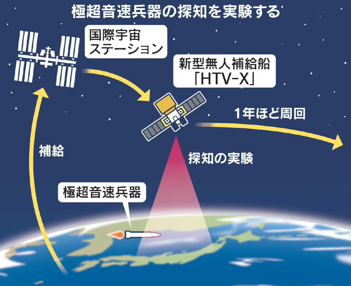 澳大利亚HEO公司的卫星天对天拍摄的日本HTV-X无人货运补给飞船与国际空间站对接的照片,为了应对中俄的高超音速导弹威胁,日本防卫省在HTV-X飞船上安装了实验用红外线传感器,在完成国际空间站的补给任务后,HTV-X将在大约一年的时间内绕地球运行,期间计划进行实验,日本防卫省将确认其是否能够检测到高超音速武器。
