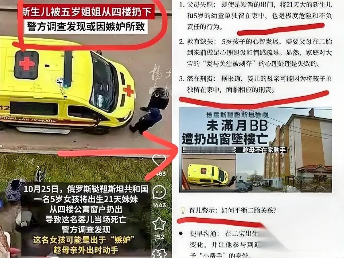 5岁娃把21天妹妹扔下楼 不是天生坏 是她算错了“抢妈妈的题” 她的逻辑简单到让人心疼:妹妹来了之后,妈妈的手总在拍小床,妈妈的笑总对着襁褓,连睡前的“小兔子故事”都变成了“宝宝要乖哦”——那把妹妹“送回去”,妈妈就能变回从前只抱她、只亲她、只陪她搭积木的妈妈。她不懂“扔下楼”是死亡,只懂“分走妈妈的人,得消失”。 好多二孩家庭的老大都有这“毛病”:尿床、摔玩具、甚至踢家里的猫——其实都是在喊“妈妈看看我啊!”可家长总把“你是姐姐要让着”当万能补丁,贴得越牢,孩子心里的“不安全感”越炸:原来我真的不如妹妹重要? 我觉得这不是孩子的恶,是我们漏了给她“爱的确认”。我们忙着给新生儿拍百天照,给小的买软乎乎的衣服,却没蹲下来抱住老大说:“你还是妈妈最宝贝的小宝贝,妹妹是来和你一起爱妈妈的。” 你们说,要是早一步把这句话揉进她手心,她会不会就不会用那么笨的方法“抢妈妈”?