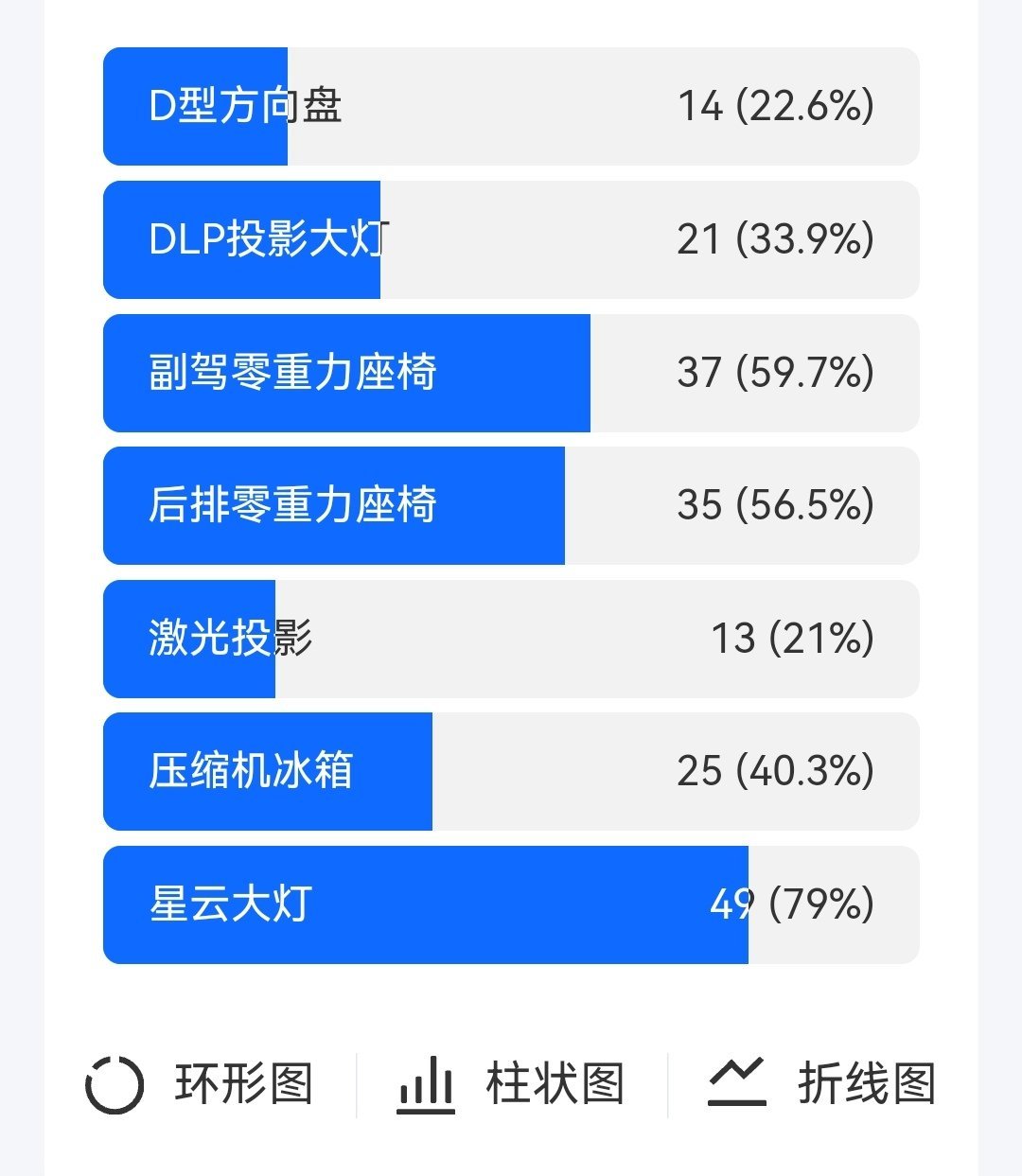 配置感知:TOP3是 星云尾灯、副驾零重力座椅和后排零重力座椅,这一点看,新款产品定义还是非常精准的打到了消费者的需求上的