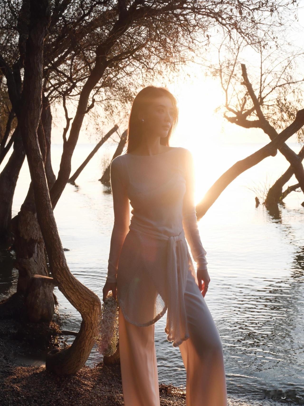 被追问了!海边日落这样穿,直接美成仙女本人🧚♀️ 宝子们!海边日落真的太好拍了!今天穿的这身米白色系穿搭,和夕阳、海水适配度满分~针织上衣温柔又显身材,搭同色系阔腿裤,走路都带风~腰上系件小开衫,层次感一下就出来了~ 手里拿个满天星花环,往海边一站,阳光洒下来的瞬间,感觉自己和大自然融为一体,这氛围谁看了不心动啊!你们喜欢这种温柔系海边穿搭吗?