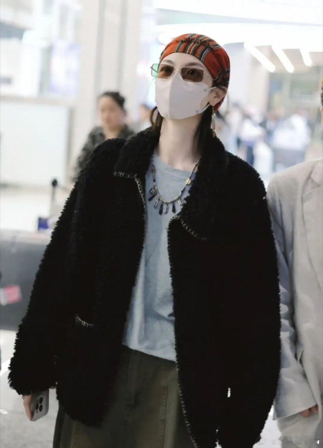 不管如何钟楚曦的关注度高了,比和前男友们各种恋情时还高,机场穿搭超有范羊羔毛外套搭个性头巾妥妥行走时髦精!!
