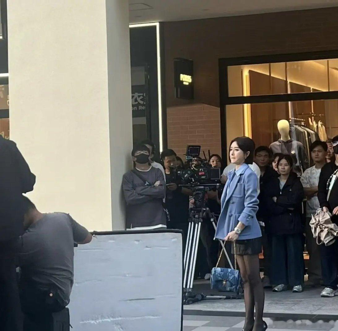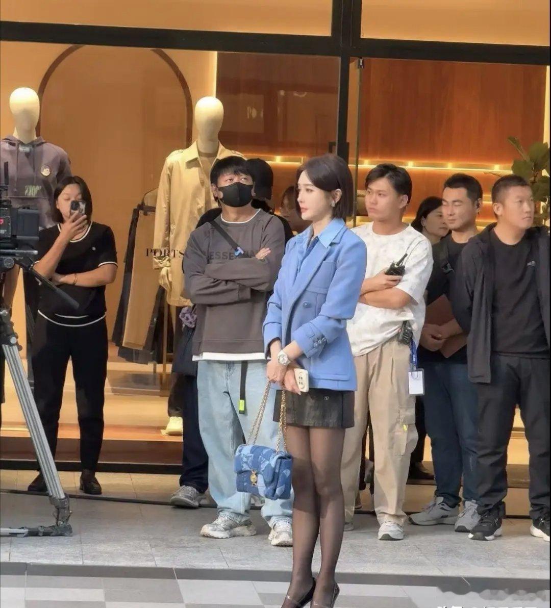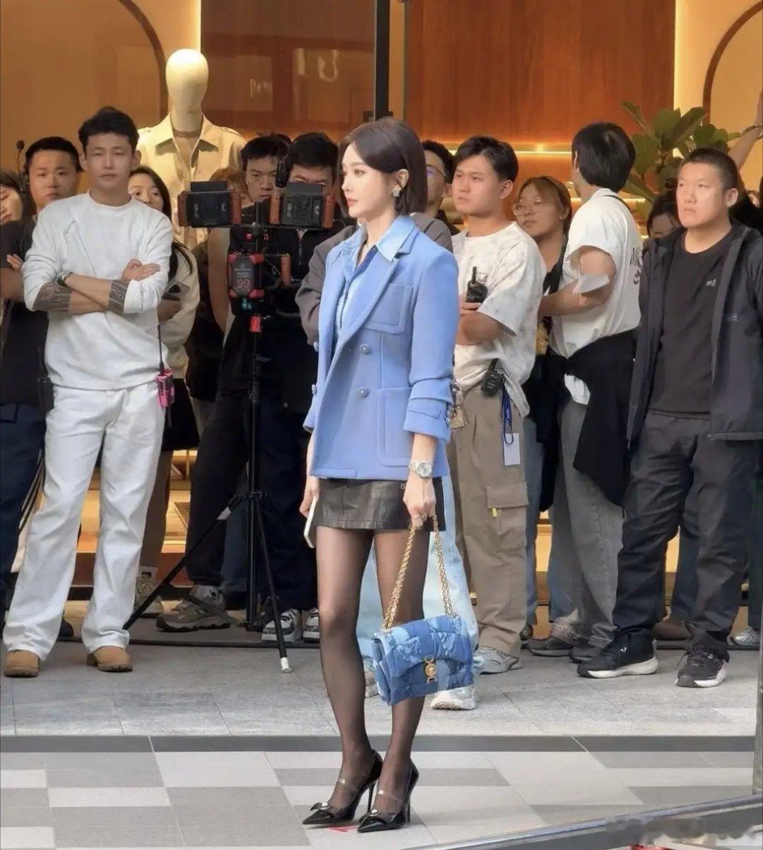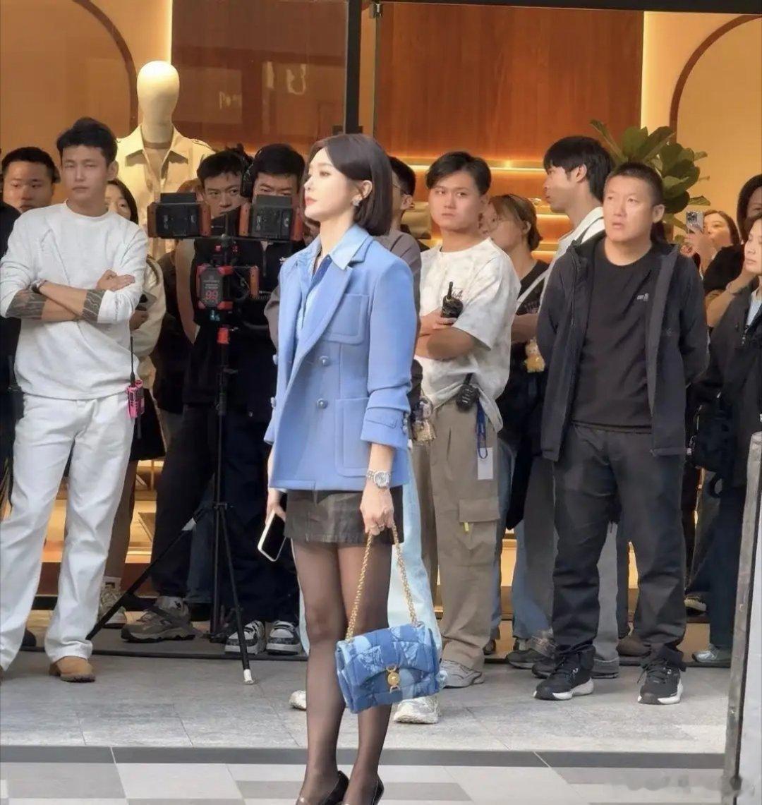 网友宁波杉偶遇秦岚,蓝西装搭黑丝尽显诱惑,气质绝了美少妇无疑了,真的很羡慕魏大勋