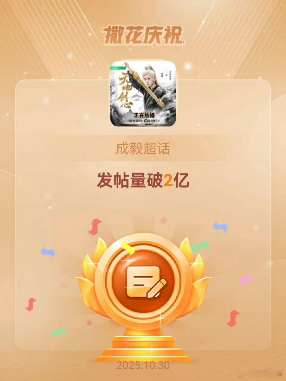成毅超话发帖破两亿 别人羡慕的两亿热度,是成毅粉丝日常的真心投递,每一条内容都装满了对他的支持,这份凝聚力,是他作为演员最珍贵的“票房”!