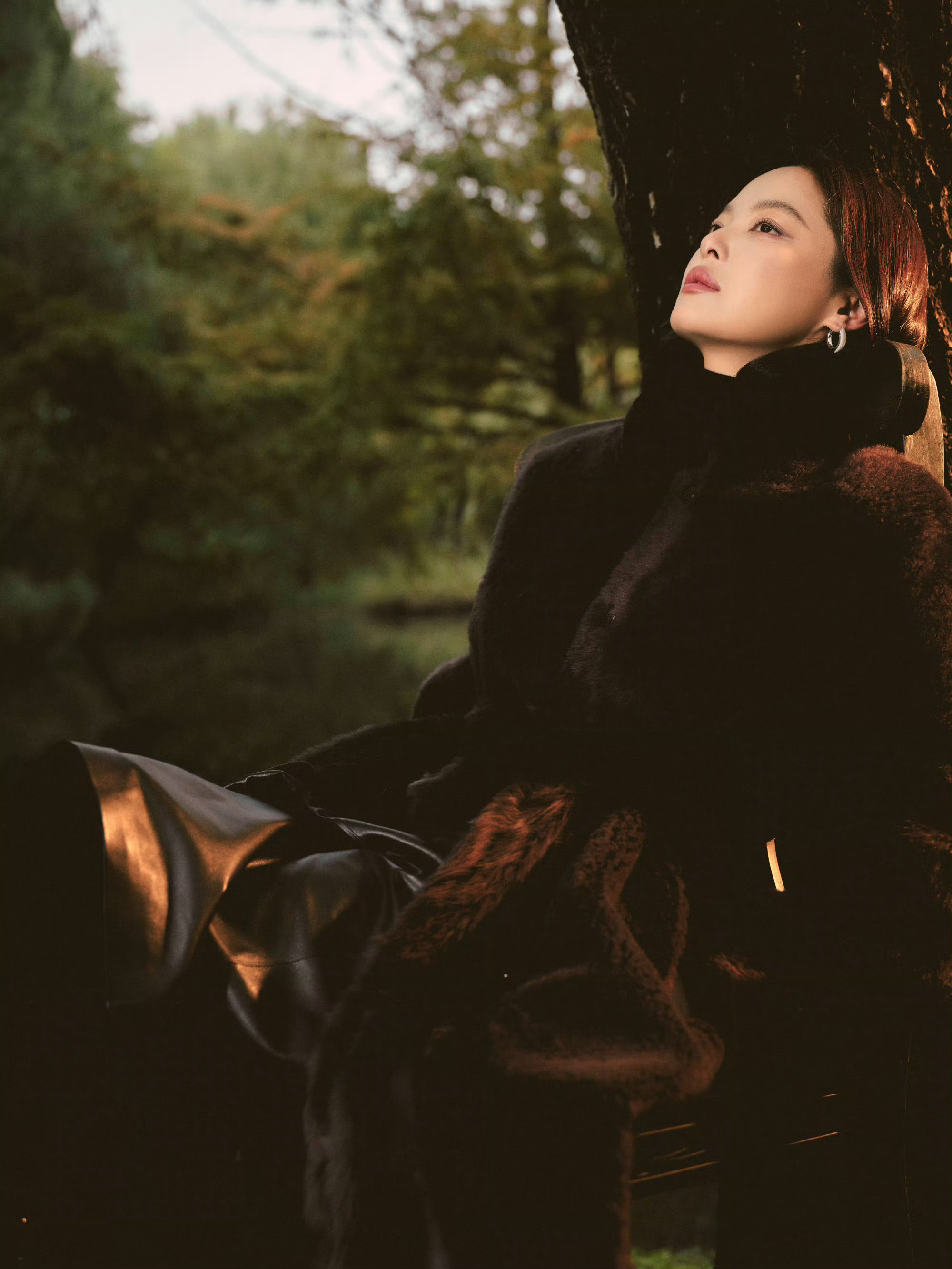 刘亦菲把死亡玫粉穿出了定制款的感觉,这种颜色普通人穿上分分钟黑三度,她居然能穿出