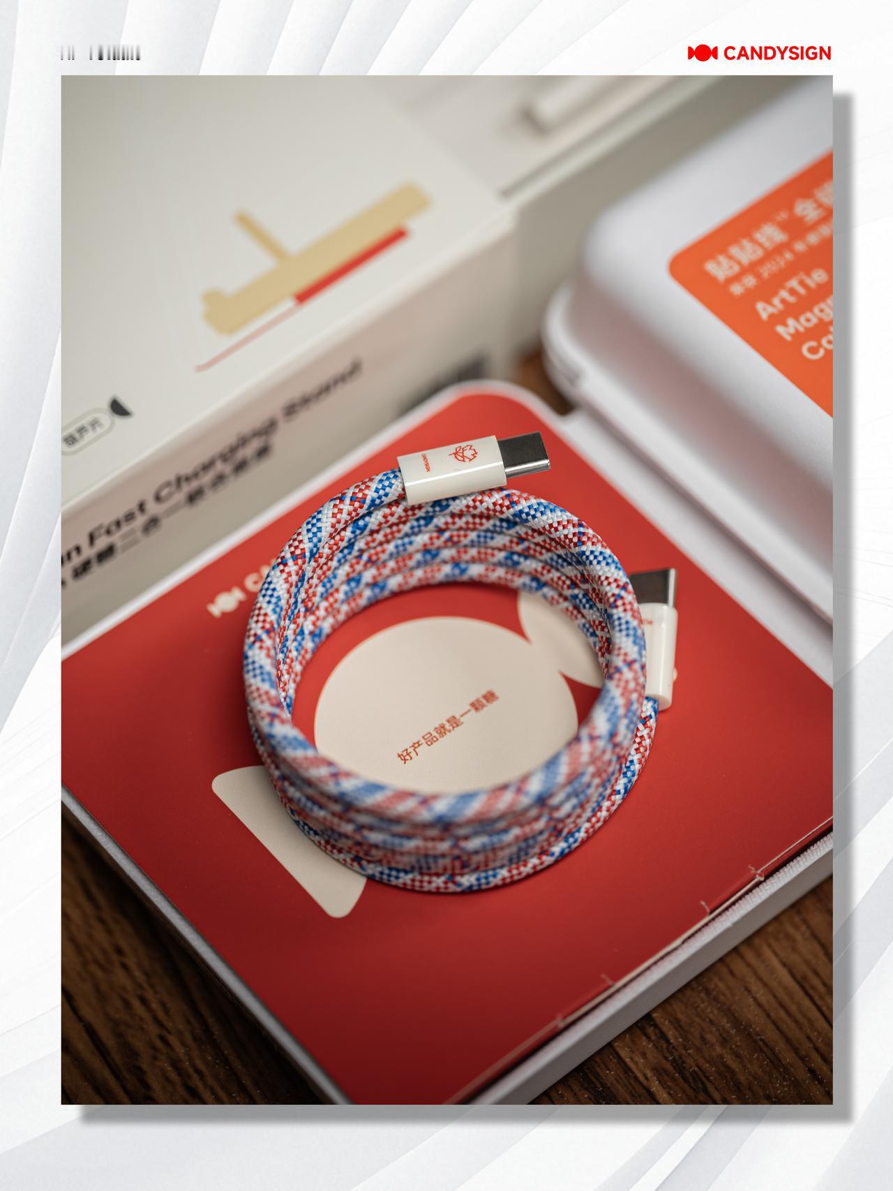 HYK图赏|制糖工厂充电装备 里面有一个二合一联合底座和一条磁吸线。底座的支架部分采用的是镂空设计,能够边充边用,USB-C快充口还可以转动倾角,能够支持除手机外的更多设备。并且为手机、平板等充电的同时还能够为耳机盒充电。磁吸线的线身也有磁吸的功能,收纳起来很方便。大伙喜欢这一套吗?