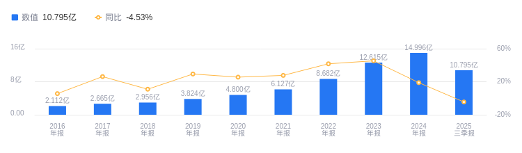 2025年三季度,盛航股份营业收入为10.79亿元,行业排名16/19,远低于行业第一名中远海控的1675.99亿元、第二名中远海发的195.66亿元,也低于行业平均数149.2亿元和中位数42.68亿元。当期净利润为7741.27万元,行业排名16/19,与行业第一名中远海控的307.86亿元、第二名招商轮船的33.43亿元差距较大,低于行业平均数24.61亿元和中位数6.64亿元。