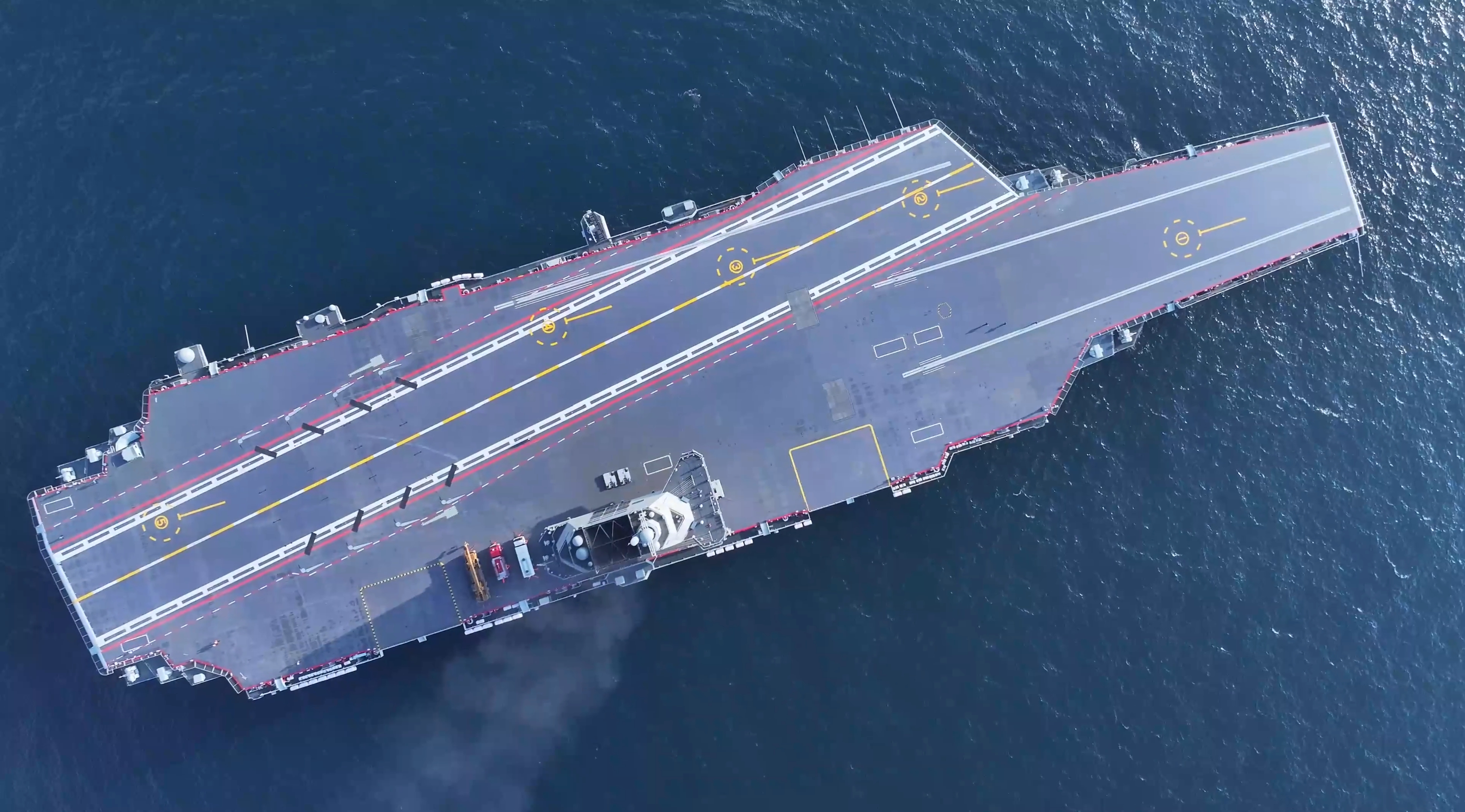 根据图中标尺,测得飞行甲板全长约316-317米,甲板最宽处约77-78米