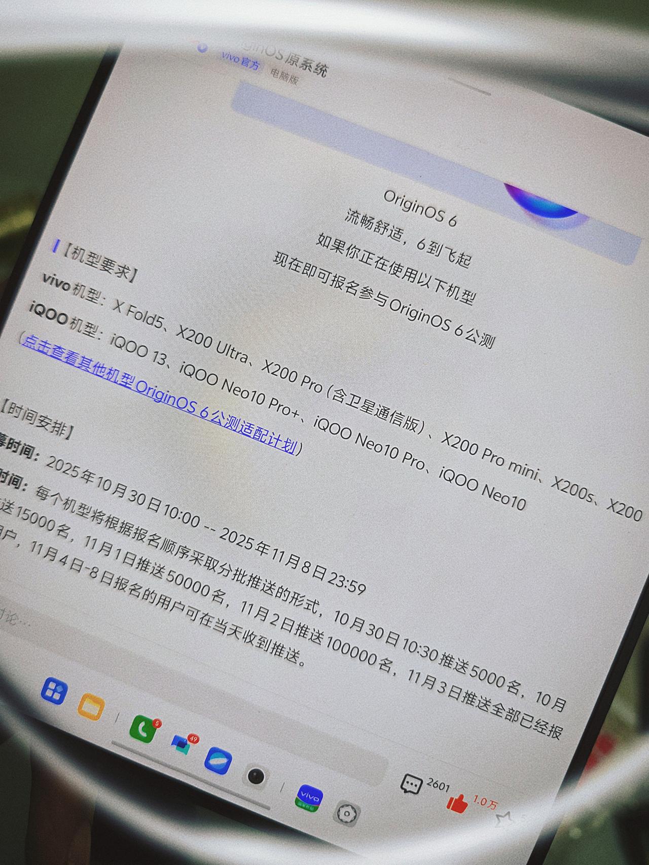 vivo X Fold5、X200全系、iQOO13、Neo10全系都可以升级OriginOS6咯。 系统管理与升级——升级尝鲜——公测报名 查看详情,申请后等个半天一天就可以升级了。 有网友问vivo快捷键不支持一键记忆吗? 支持,在设置里,选蓝心智能,选识屏记就可以啦,不过目前蓝厂记忆信息的丰富度还有待提升。