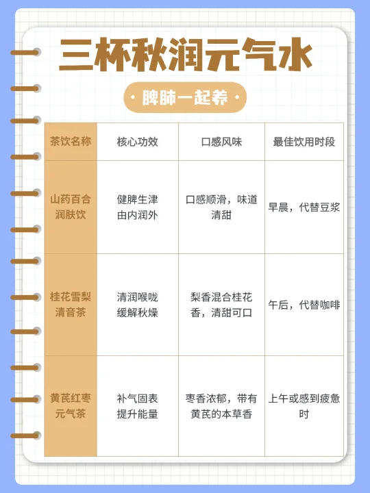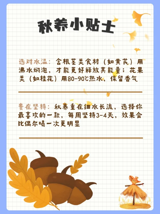 贵在坚持:秋养重在细水长流,选择你最喜欢的一款,每周坚持3-4天,效果会比偶尔喝一次更明显。