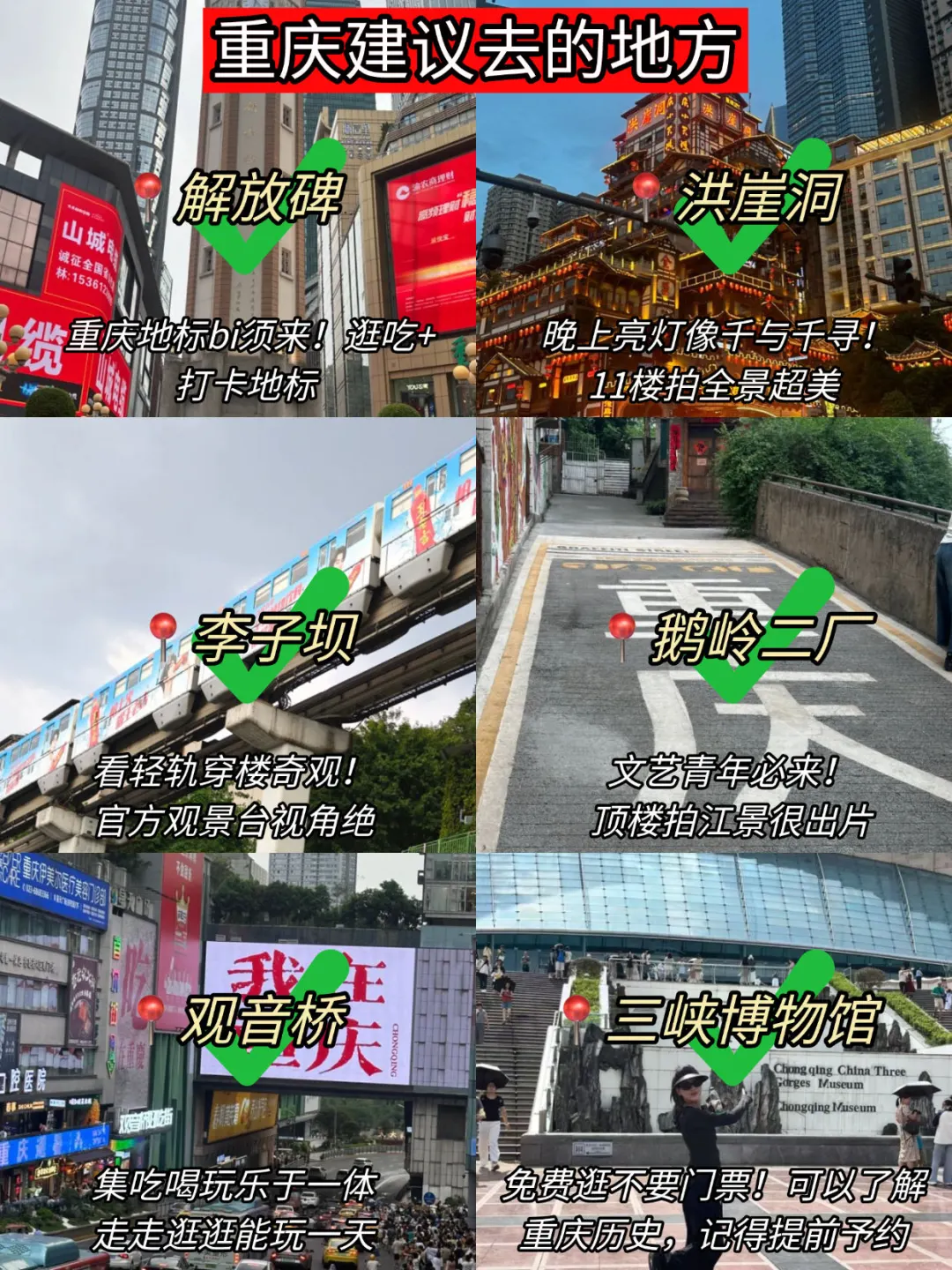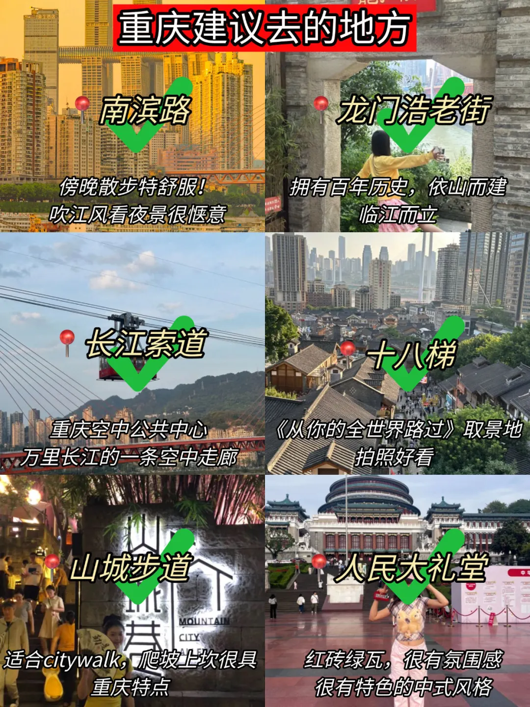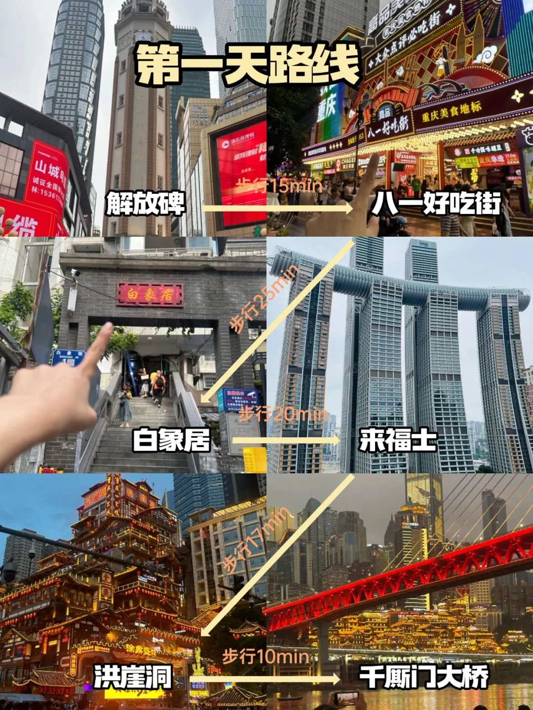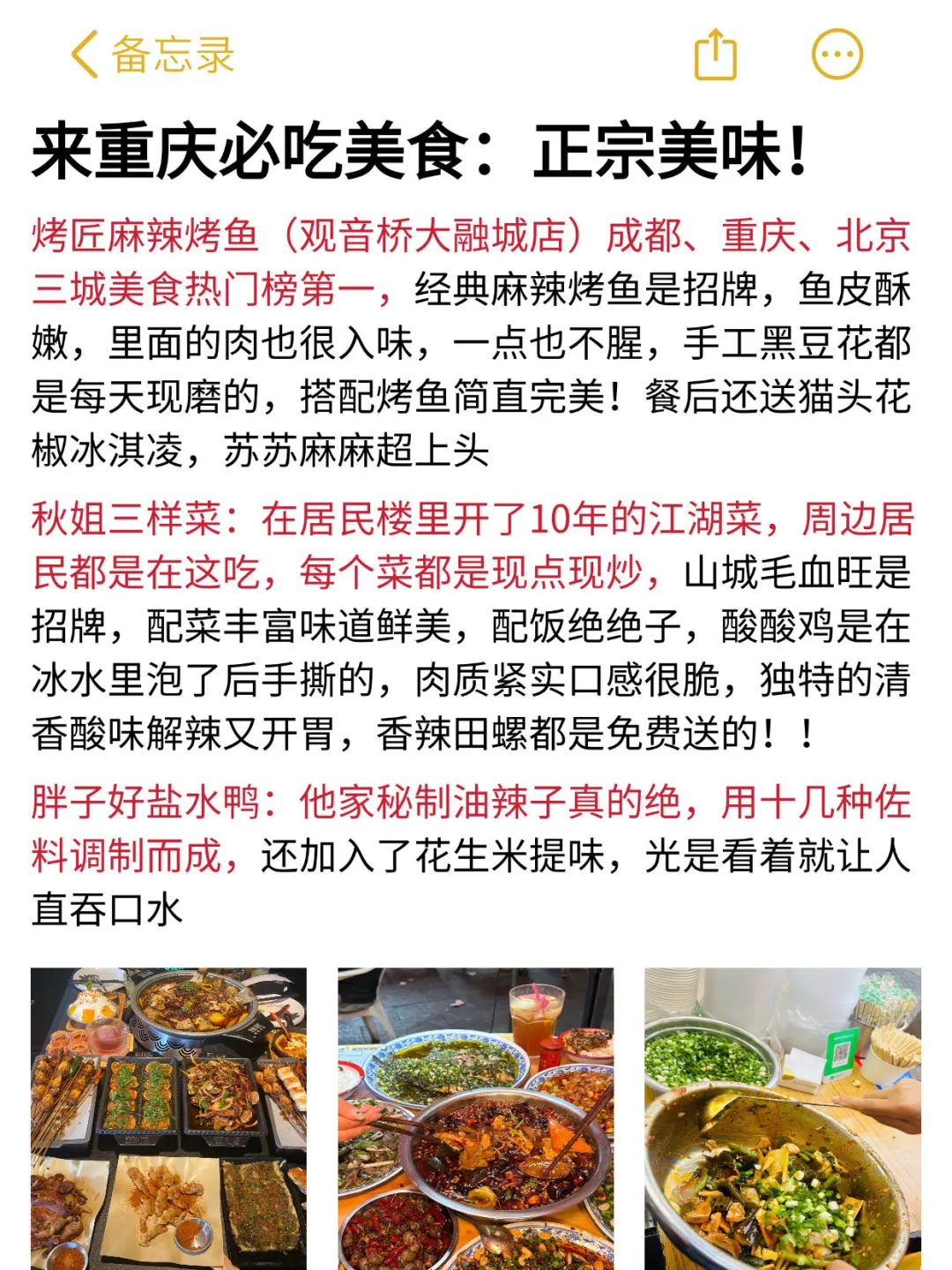 各位宝宝们,我这周刚从重庆回来 重庆真的很好玩!!但是一定要听劝!!🥲 真的有很多雷点!大家看完我的攻略一定有帮助的 实在不想看大家淋雨了⛈️ 不绕路推荐:day1:解放碑-八一好吃街-白象居-来福士-洪崖洞-千厮门大桥day2:鹅岭公园-鹅岭二厂-李子坝-北仓文创园-观音桥-九街 美食推荐:烤 匠 麻 辣 烤 鱼(观音桥大融城店):央妈认证的重庆烤鱼,闭眼冲!秋 姐 三 样 菜:重庆江湖菜就要吃开在居民楼里的,正宗美味,他们家都是现点现炒 更多城市旅游攻略 ➡️重庆烤鱼重庆美食重庆火锅重庆旅游重庆美食烤鱼重庆必打卡重庆江湖菜解放碑江湖菜