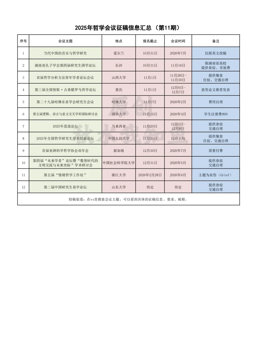 每次见到人大哲学研究生创新论坛开始征稿,就知道冬天又来了。临近年底,各个学校都在把之前积压的会开掉,几乎每周末都有中哲的会议撞在一起。新发布的会议消息少得多了,第二届研究生易学论坛在年初就放出消息,到现在还没动静,不晓得还办不办了,有没有知情人分享一下。[呃R][呃R]