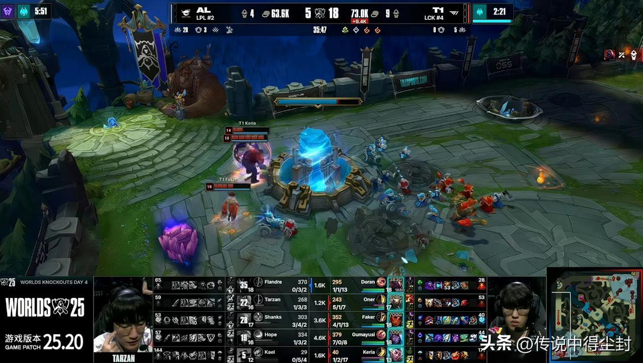 完了呀,AL第一把这是咋回事? 怎么没有瑞士轮打LCK一二号种子GEN和HLE那样有韧性、精彩的操作了? 从开局就被压制,无论是打团还是控龙,全部落于T1的下风…… 是因为休赛期太久了,手感不在了吗? T1也是神奇,一进入八强淘汰赛像换了一支队伍,全场几乎零失误。 难搞……