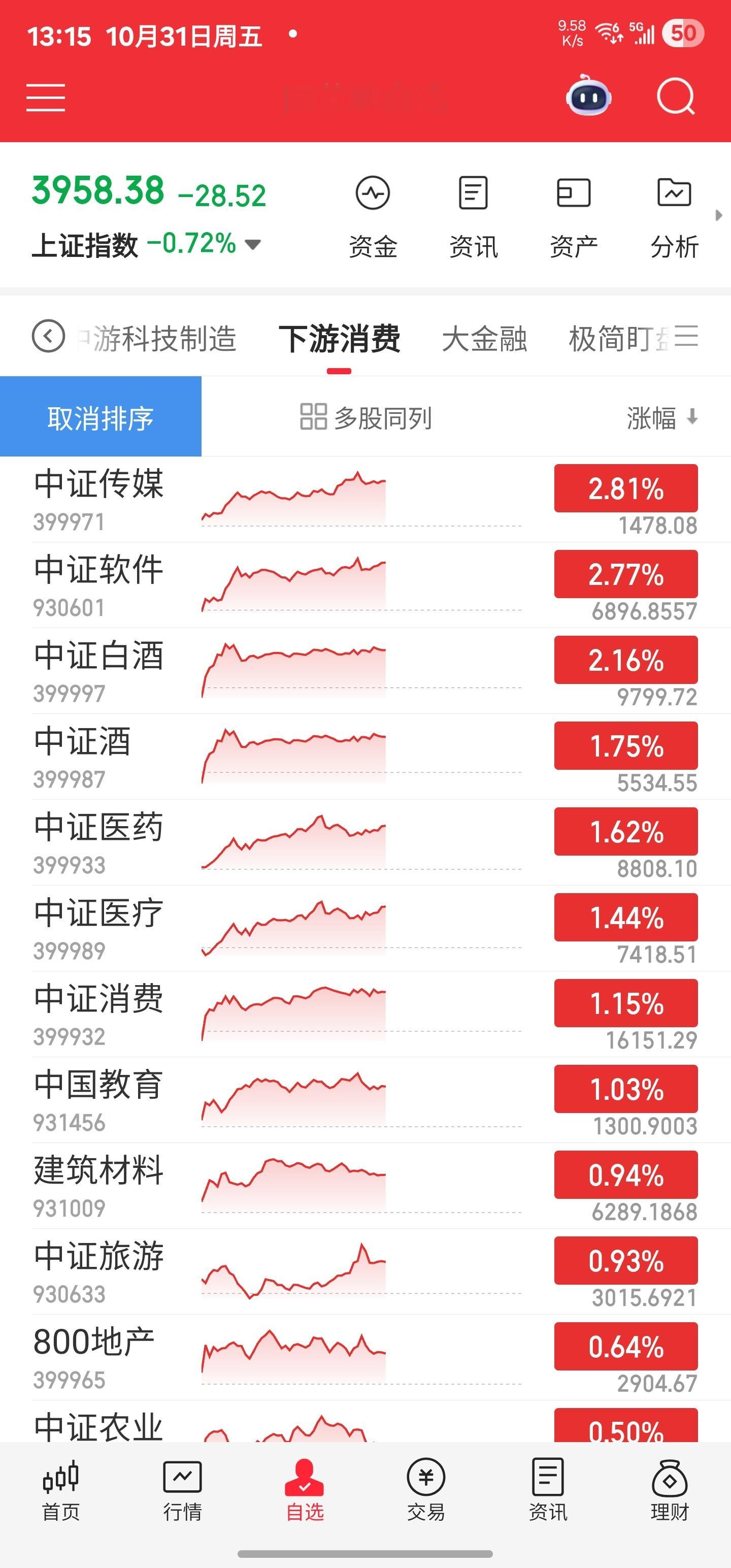 10月最后一个交易日,上中下游,消费独美。