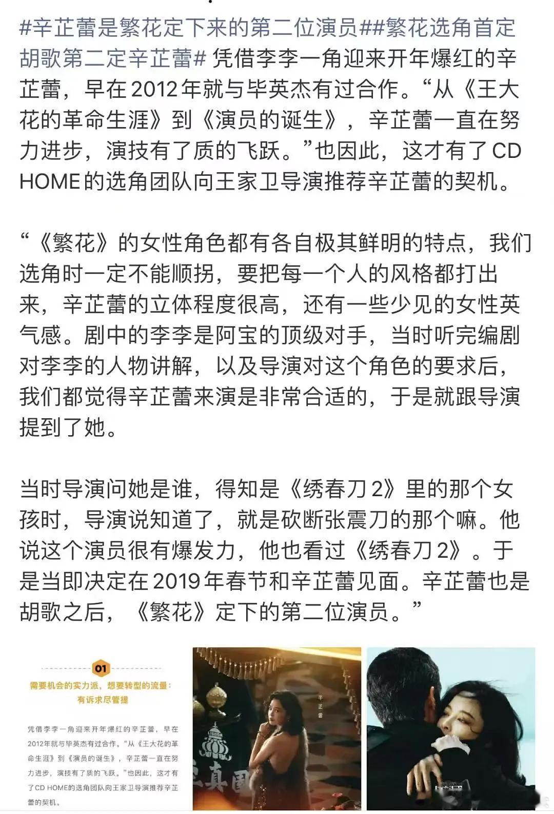 辛芷蕾可没有上影撑腰,是一直合作的选角公司推荐的面试,自己面试得到的角色