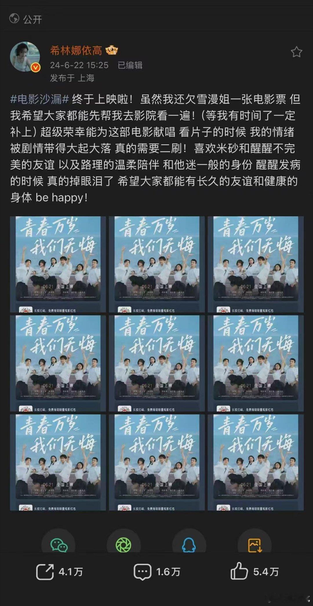 希林娜依高电影ost唱嗨了真包场希林娜依高即兴包场 刷到为《即兴谋杀》包场好惊喜!她唱的片尾曲自带氛围感,加上之前《沙漏》的包场,每次都用行动支持自己的OST,诚意绝了~