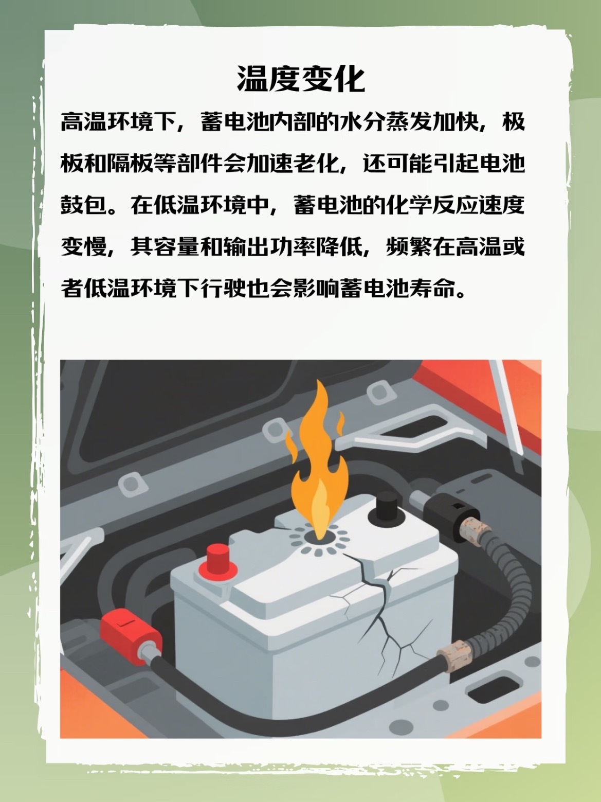 🔥高温:水分蒸发快,极板老化,严重鼓包!