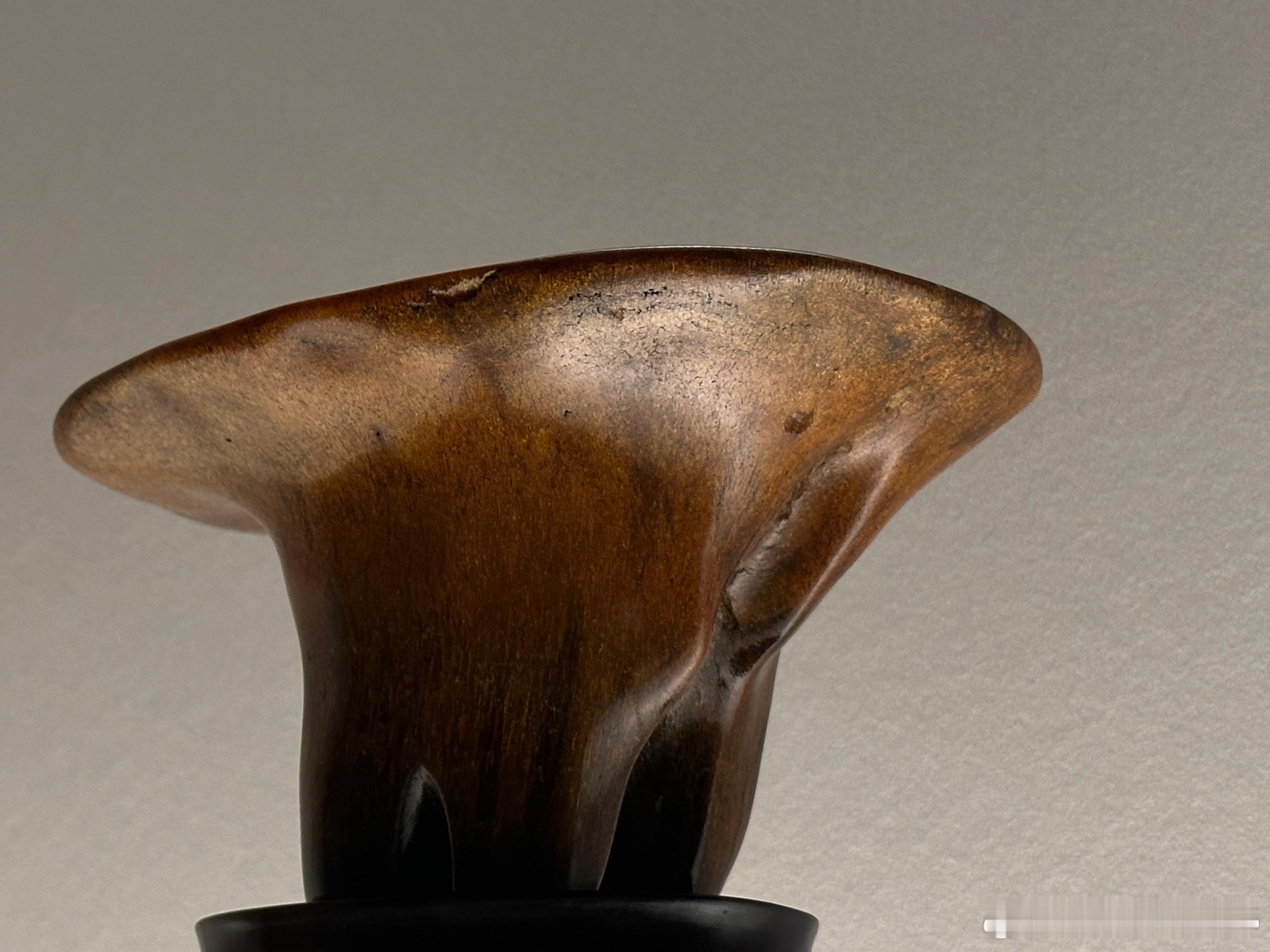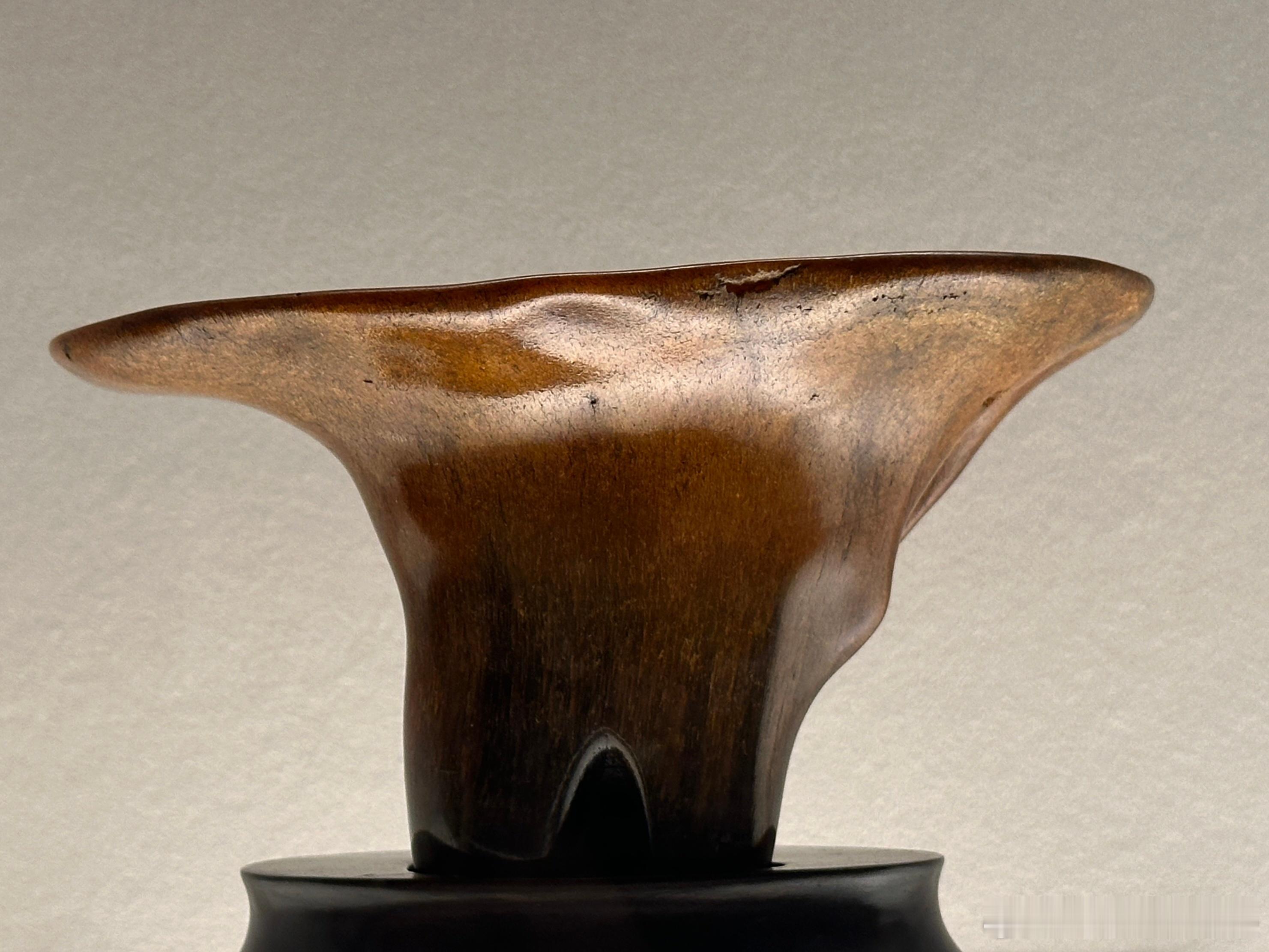 只有品质上佳的犀角才不施雕刻,突出了材料本身的质地、色彩与纹理之美。光素处理能让犀角温润细腻的质地,沉净的色泽,独特的纹理得到充分展现。