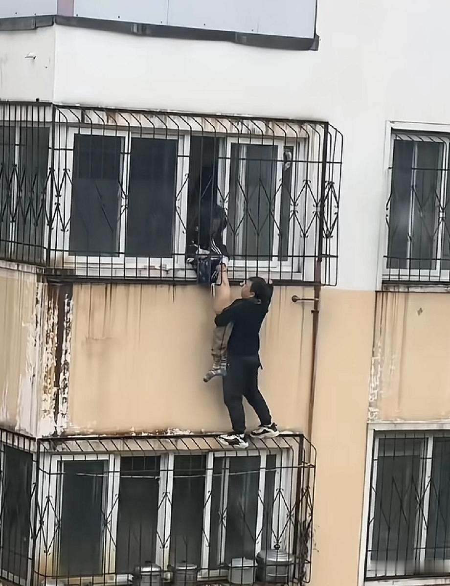 一般人还真做不到,关键时刻外卖小哥比救援大队还迅速! 一孩子卡在窗户护栏,群众已经拨打救援电话,但是一外卖小哥眼看拉小孩子的人快力竭了,马上拉不住孩子了,外卖小哥直接徒手爬窗户的护栏上去了,把孩子救了,这小哥的胆量和手法都是太令人感动了,这平时都没人敢往上爬,给这个外卖小哥点赞!