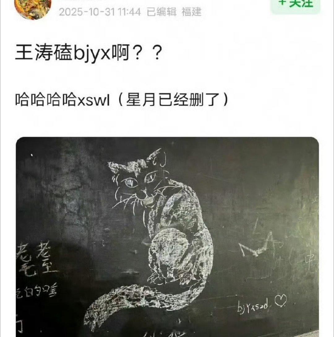 王星越发的其中一张图里面被大家发现写着bjyx,网友都在热议难道王星越自己也在追王一博跟肖战的博君一肖啊,被发现后立马就秒删了