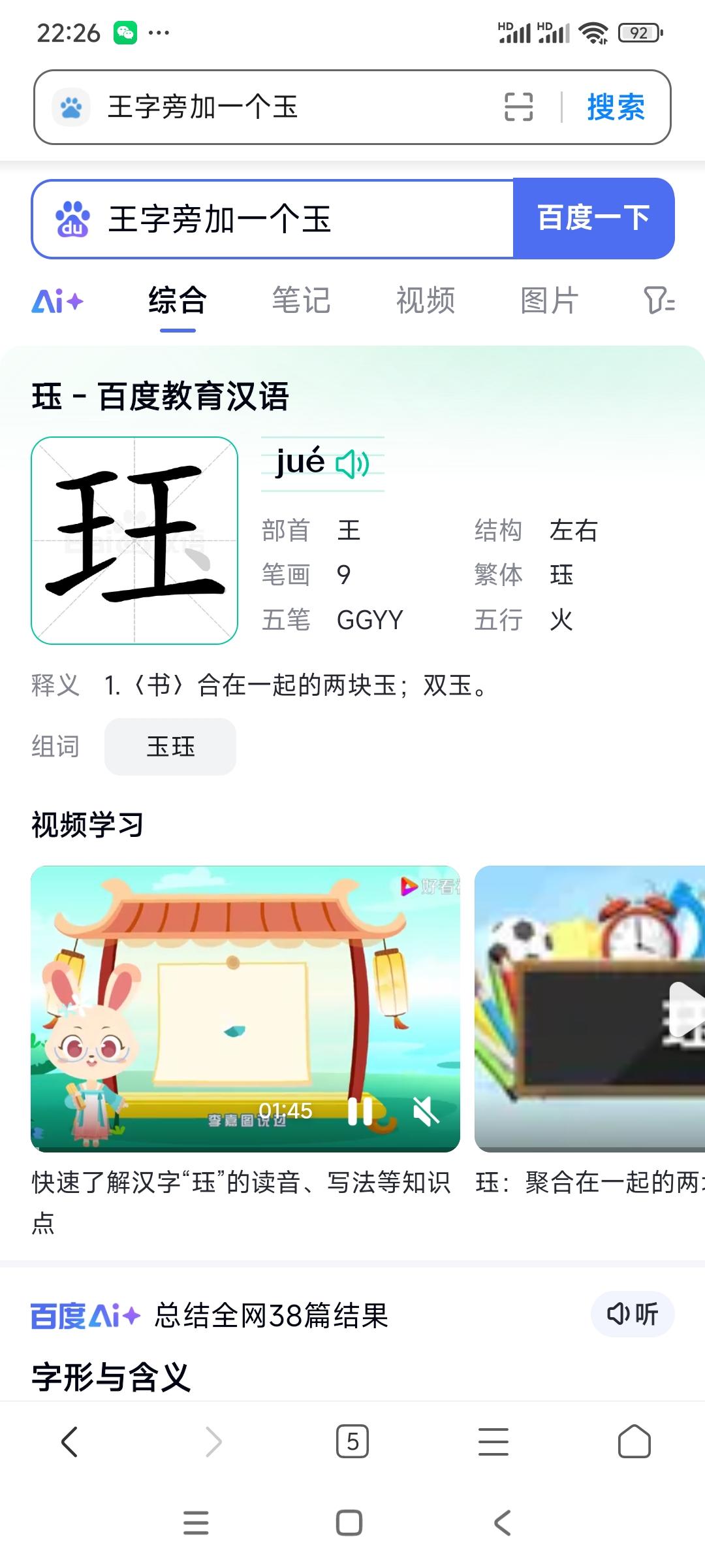 有趣的汉字 中国汉字博大精深,尤其是左右结构的字,往往不认识或者半信半疑的读成右边的字。 我今天遇到这种情况, “珏”这个字,相信大家都会读成玉,错,大错特错,这个字不读玉,读“决”,拼音jue第二声。 我这个白字先生,白活了45岁。 玉和钰,确实是同一个拼音。