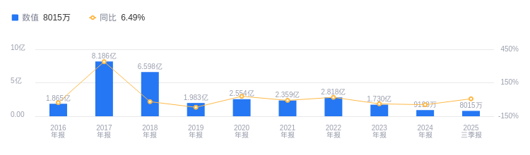 2025年三季度,春兰股份实现营业收入8015.07万元,行业排名68/69,远低于行业第一名保利发展的1737.22亿元和第二名万科A的1613.88亿元,行业平均数为117.27亿元,中位数为19.38亿元。净利润为1.2亿元,行业排名18/69,行业第一名保利发展为65.15亿元,第二名*ST中地为45.86亿元,行业平均数为-7.07亿元,中位数为-936.87万元。