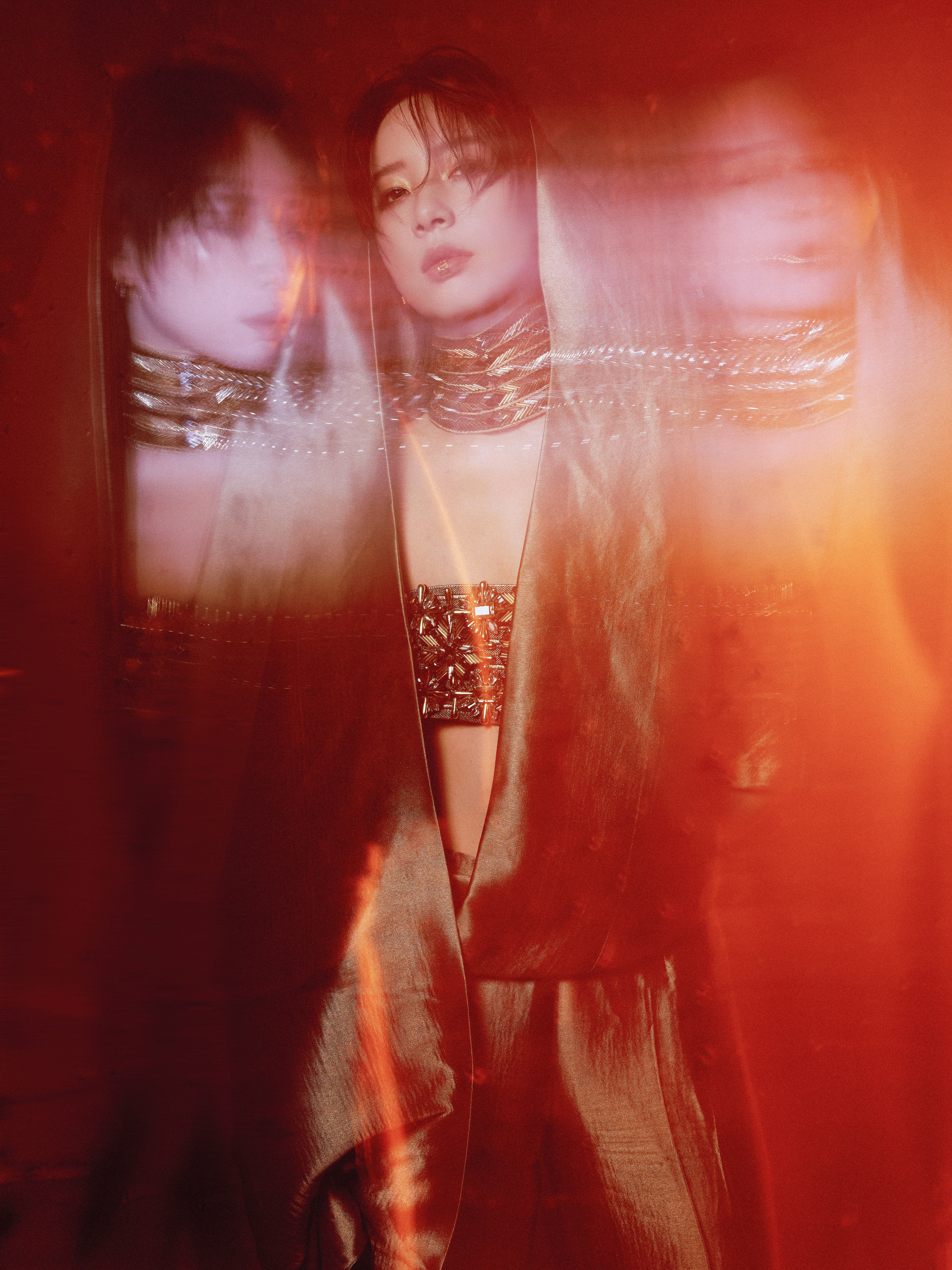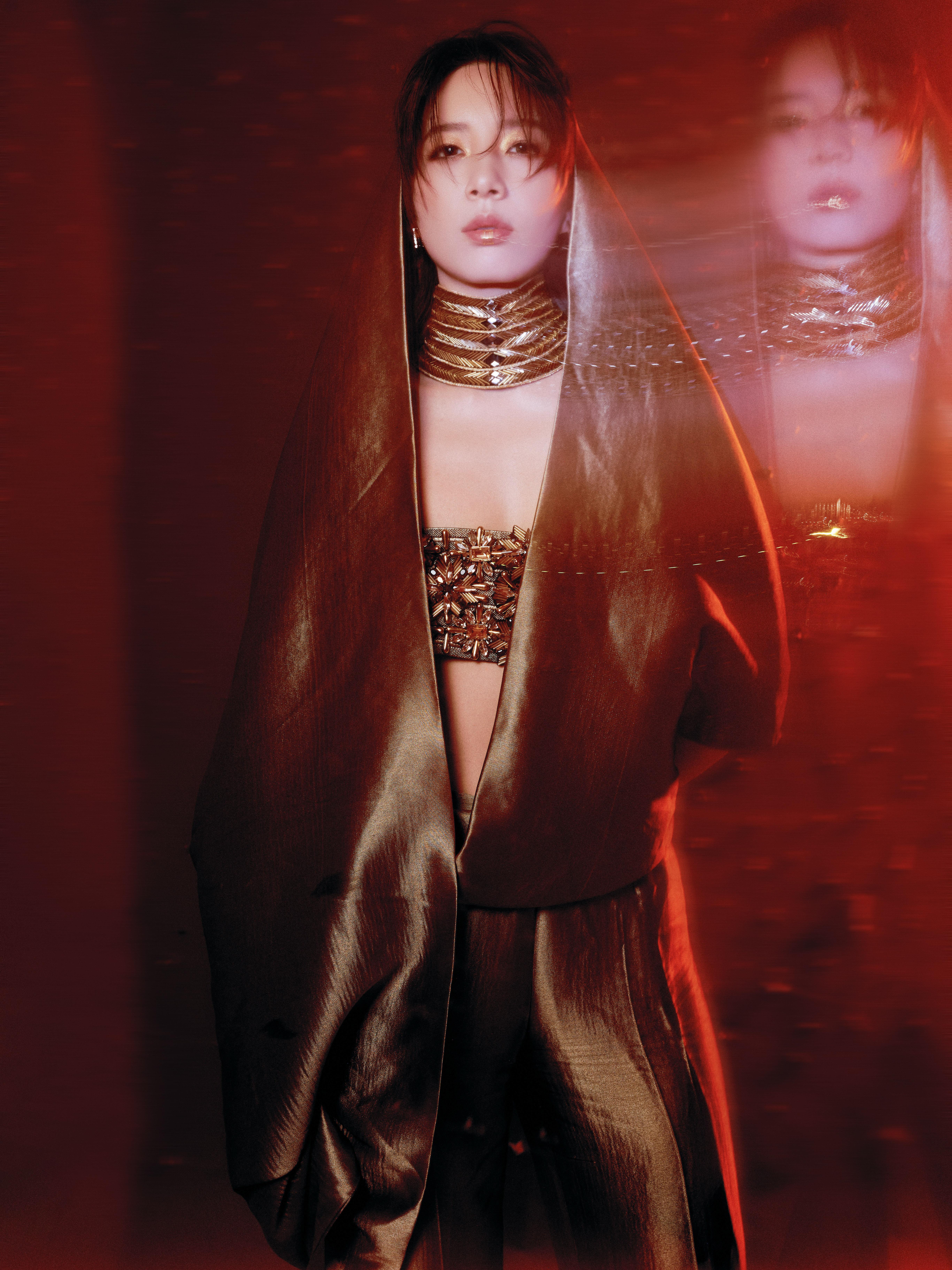 来自李斯今晚盛典造型图集 ,选择了一套出自 Maison Sara Chraibi 2023 春夏高级定制系列礼服亮相 ,与品牌的第四次高定合作 ,以金色缎面打造建筑感廓形 ,水晶抹胸与金属颈饰相衬 ,兜帽设计则增添神秘氛围 ,流光熠熠 、飒爽夺目 ,尽显强大气场 ~ ✨