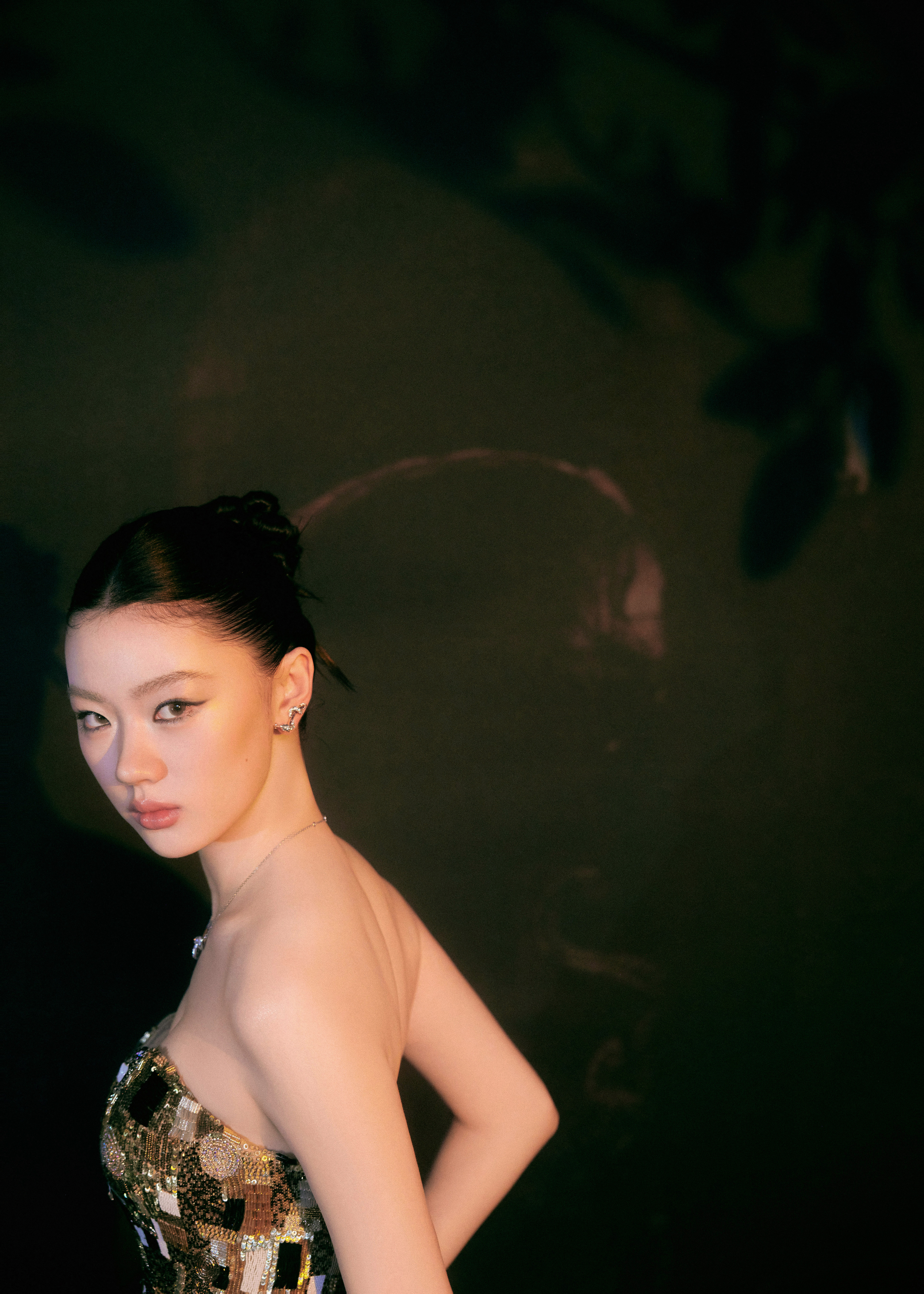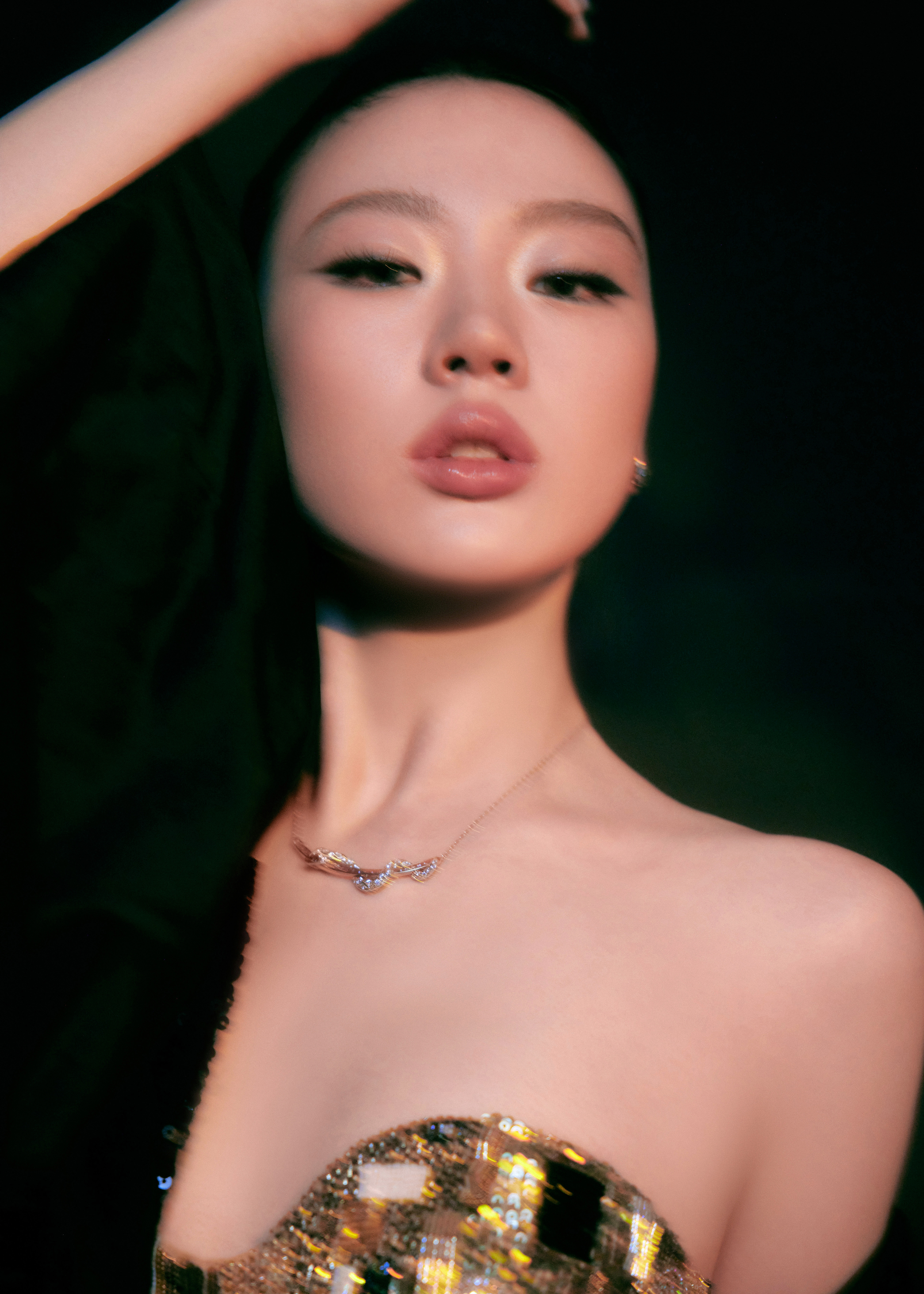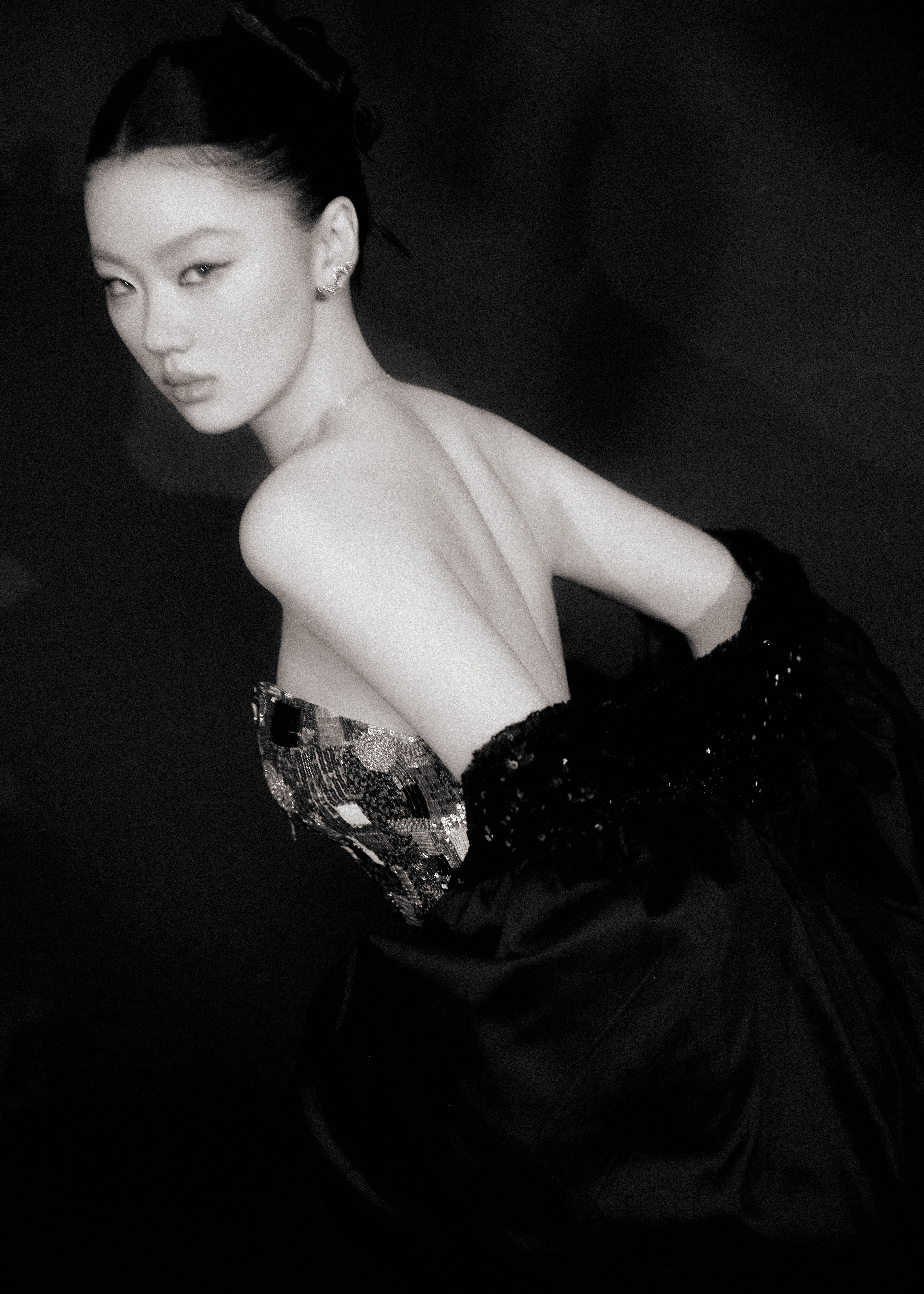 单依纯一身钻到发亮的深V露背裙,一出门,全场静音。不是靠炸街,是靠气场压住全场