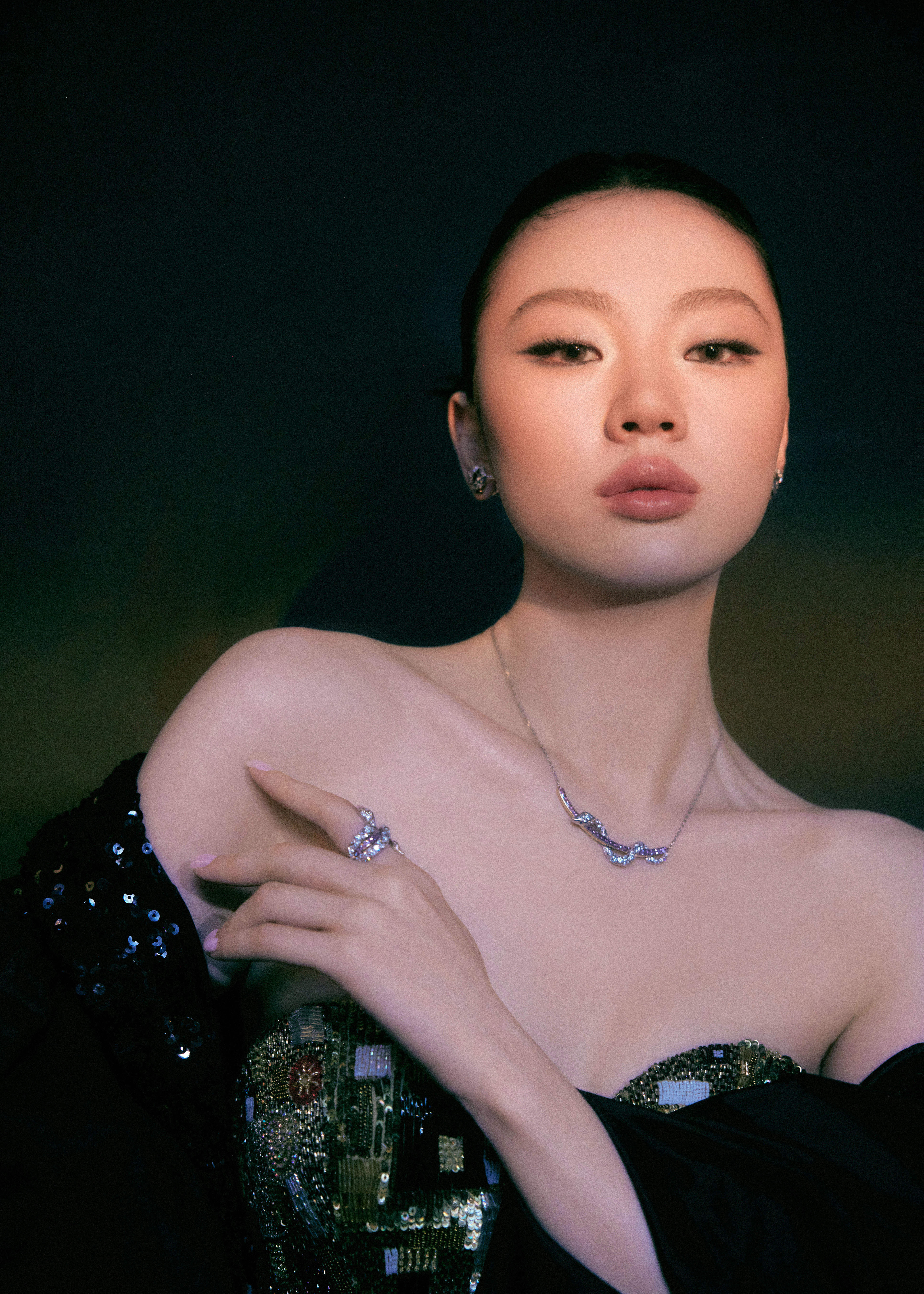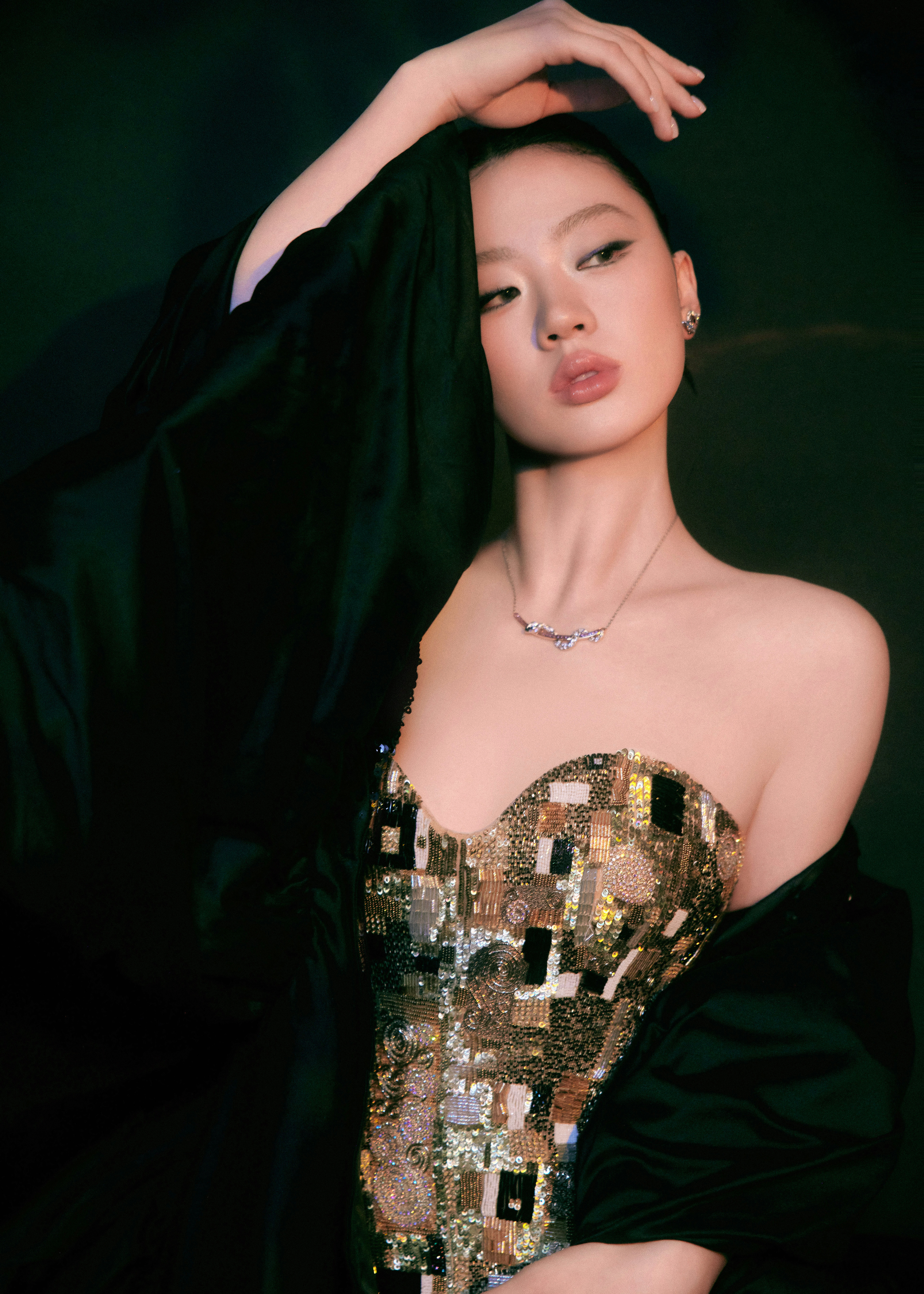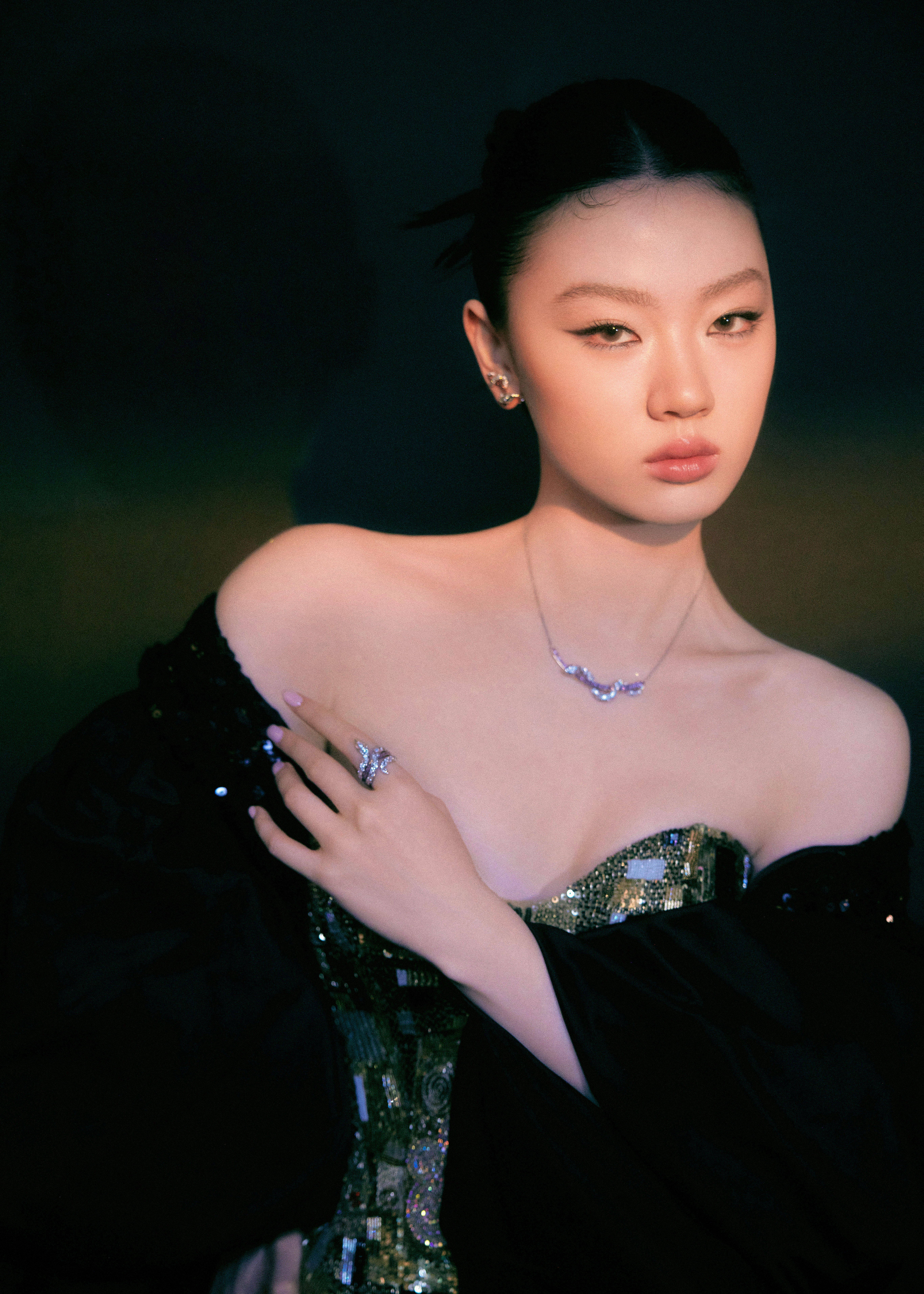 单依纯一身钻到发亮的深V露背裙,一出门,全场静音。不是靠炸街,是靠气场压住全场