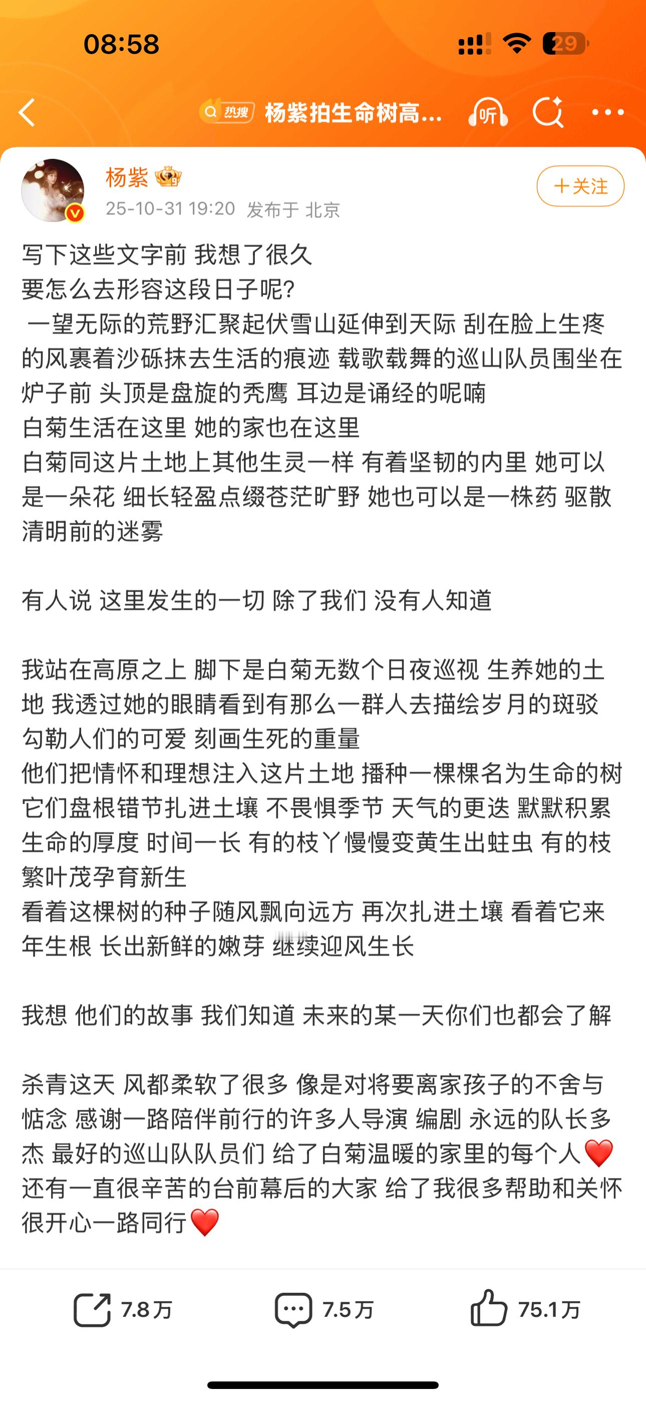 杨紫拍剧一年都没过夏天刚结束《生命树》拍摄的杨紫,11月2日参加其代言品牌的直