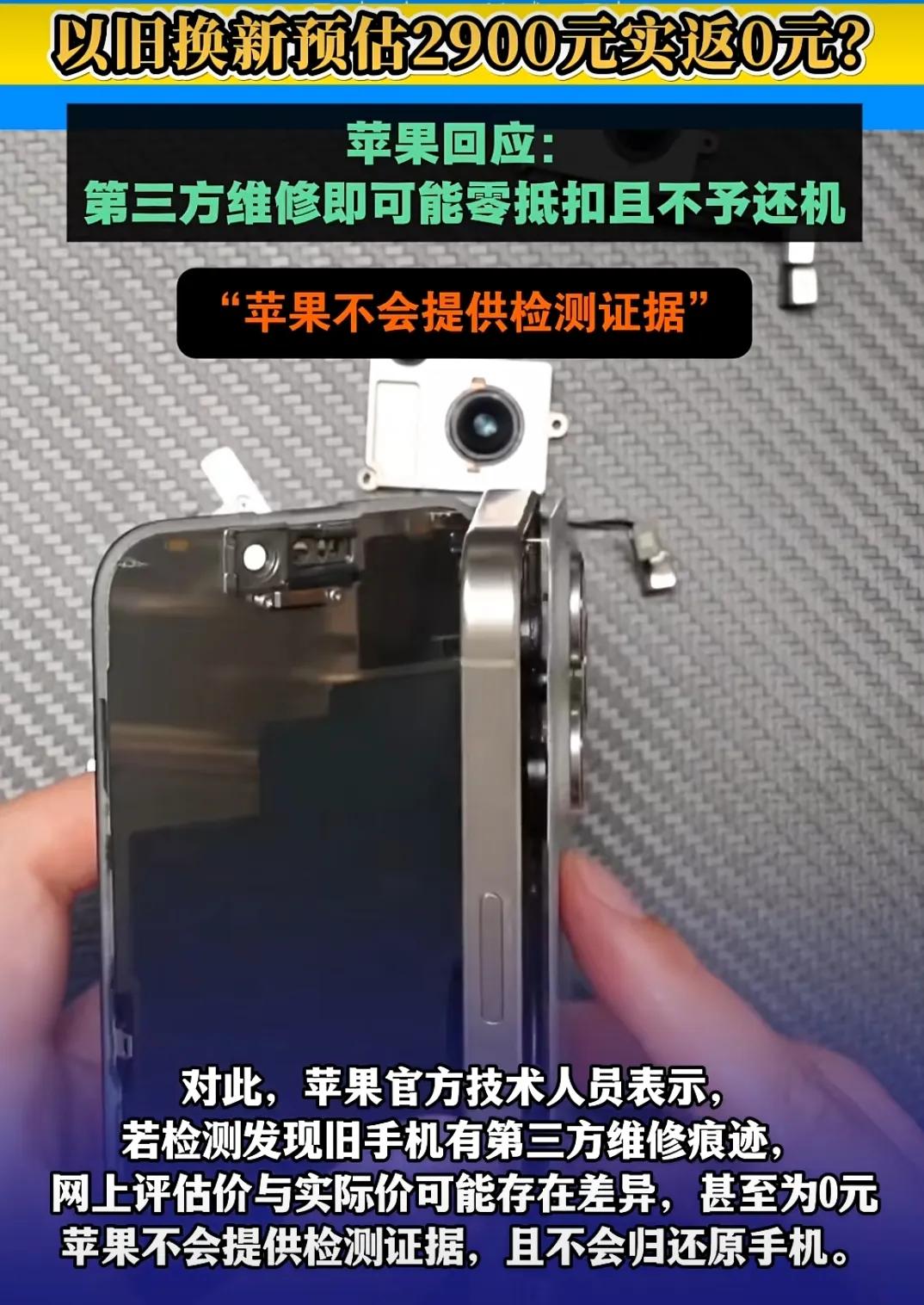 苹果换购计划,一场有蓄谋的“零元购”抢劫?为了赶在一年一度的剁手节能多卖点手机,苹果官方近日罕见上线了“换购计划”,也就是支持用户将旧iPhone折价,最终抵扣iPhone17的价格。本来是一件双赢的好事,用户处理了旧手机,苹果还能多卖新机,可计划一开始就走偏了,接连有网友曝出大丑闻,苹果直接0元把自己旧手机收走。 多名网友晒出的截图显示,自己寄给苹果的iPhone14、iPhone15,苹果承诺抵扣2900,有的抵扣3200,可苹果收到手机后就翻脸不认账,用户最后结账才看到,旧手机的抵扣价直接归零了,理由仅仅是“外部维修”。相当于苹果将用户旧手机“零元购”抢走,而且不退回,也没有任何说法。关键是用户明确表示自己旧手机正常可用,且没有过维修记录,苹果凭什么拿不出任何证据的情况下,就私自扣留用户手机,说是霸王条款都是轻的,典型的店大欺客,明目张胆的从用户手上抢东西。 果真如网友所言的话,苹果此举可能已经涉嫌违法犯罪,即便苹果的旧手机回收是第三方做的,苹果的责任也难辞其咎。说的难听点,苹果同三方联手给用户下套,就是“货想要,钱还不想出”的揍性。这年头手机不好卖人之常情,可那也真不该是这家国际大厂能干出来的事。希望苹果能早日意识到问题的严重性,尊重用户的声音和诉求,别贪图一时小利让三方钻了空子,等到苹果仅存不多的老本被耗干了,再想挽回用户的信任就晚了。