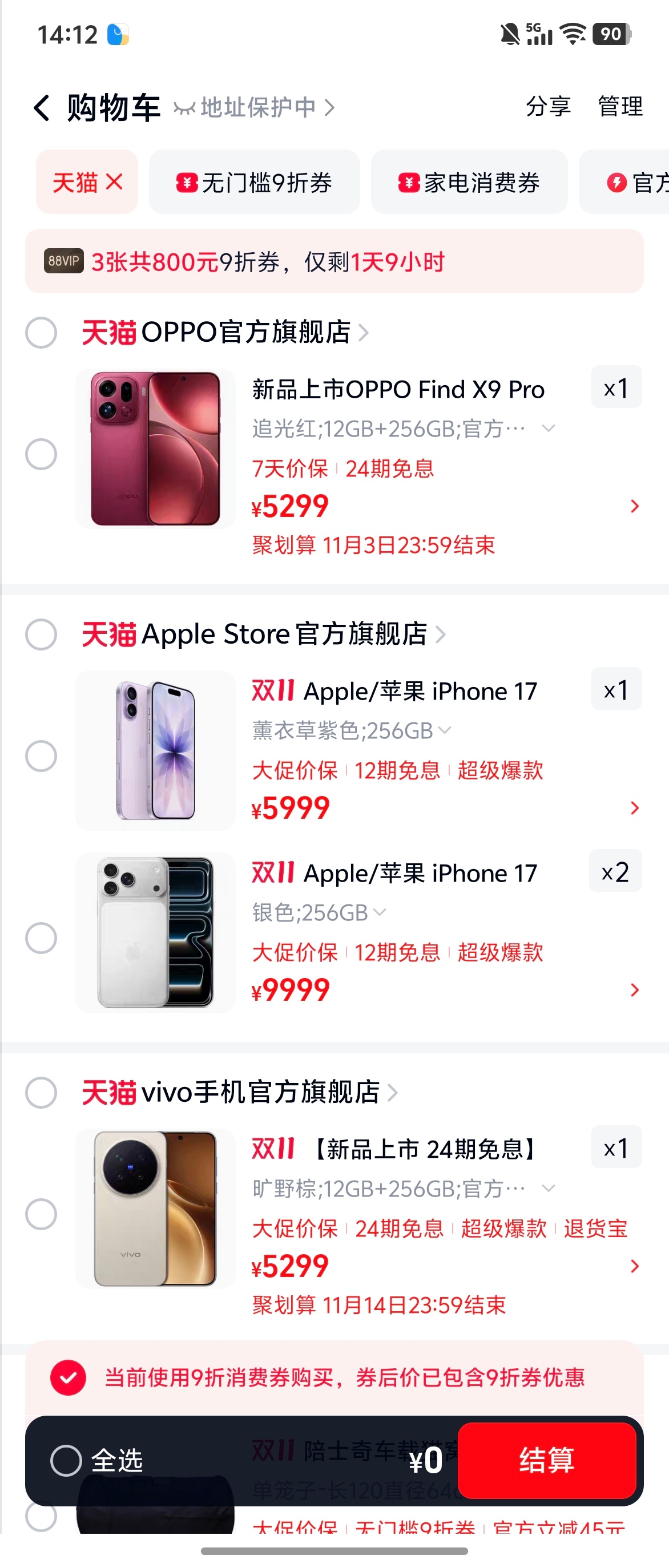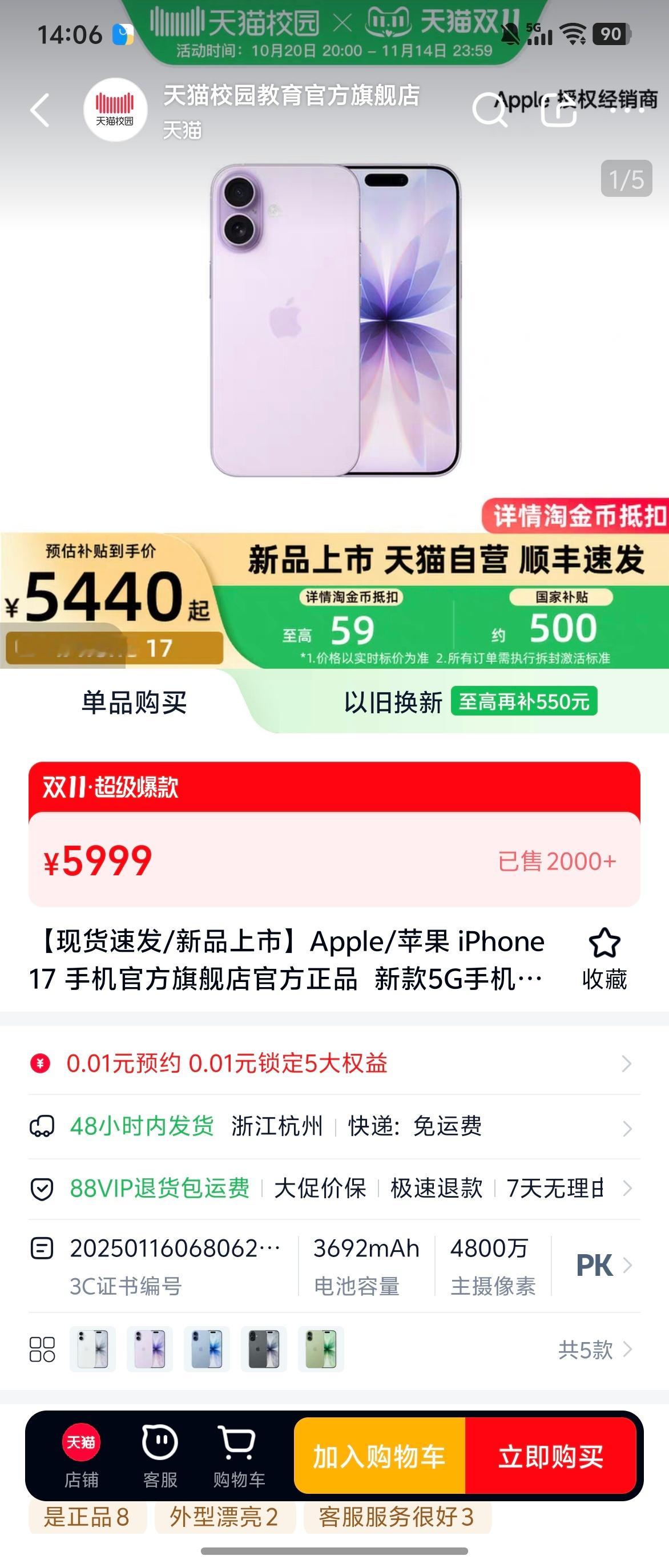 而且,这些国补还能和平台立减、百补叠加,跨店满减、88VIP消费券叠加,绝对是全年最低价。七哥购物车已经加购了iPhone 17标准版,今年这个是真香啊,准备蹲双十一再搞一台给家里人用。其次是各大品牌出的Pro,基本都在6000以下符合国补,叠加天猫双十一好价可冲!我分享完了,也欢迎大家来分享一下你的双十一作业,一起抄抄[嘻嘻]