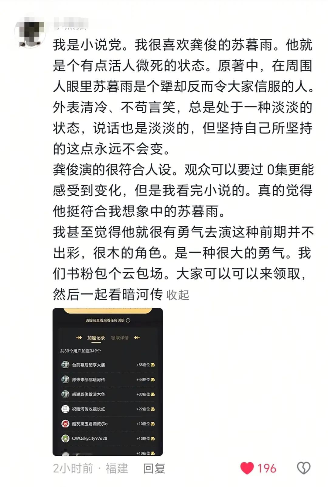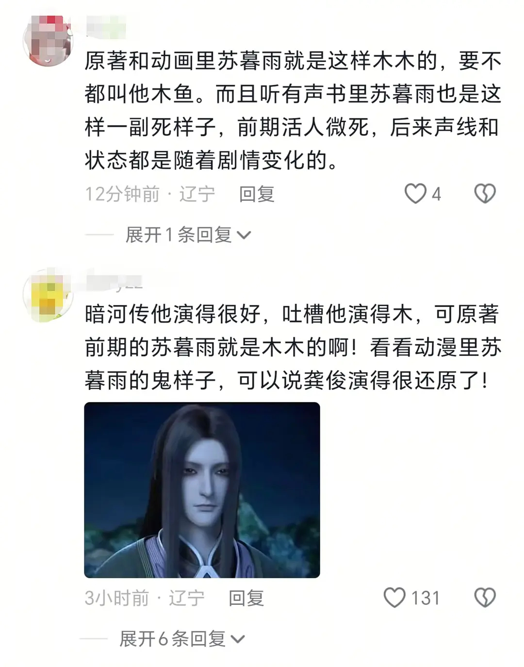 看到那些吐槽龚俊《暗河传》演的木的就无语,动漫粉和原著粉都出来替龚俊发声了,并包场支持他! 原著里的苏暮雨就是表情冷淡不苟言笑,龚俊演的已经很还原了!!!