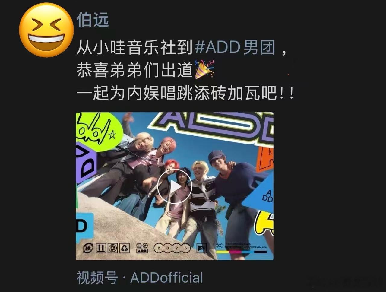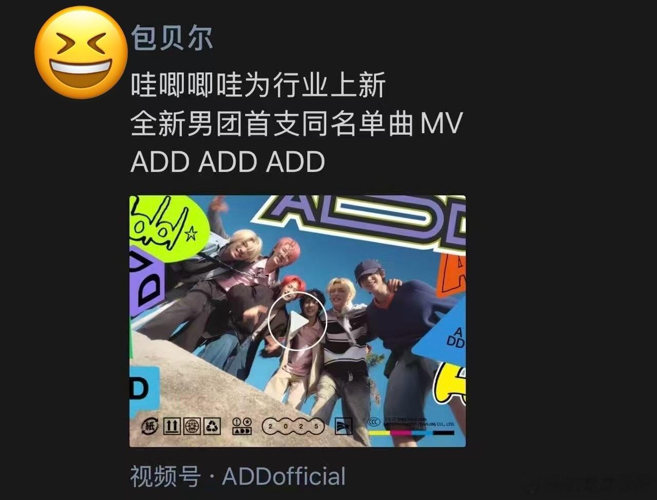 现在的状态:粉丝还在搜“ADD成员有谁”忙着补课,明星们早把朋友圈刷成了新男团的“专属宣传墙”!蔡明、谢楠带头安利,海泉、车澈跟上认可,哇唧家族全员撑腰,这波“粉丝补课vs明星狂推”的反差也太好笑了,现在去补MV还能跟上大家的节奏不?众星朋友圈狂推哇唧新男团