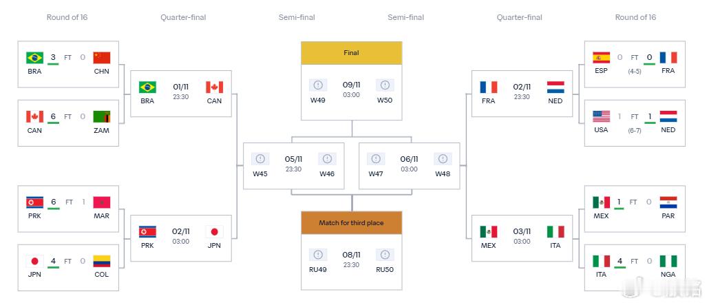 U17女足世界杯 U17女足世界杯四分之一决赛今晚开战,巴西对加拿大,朝鲜对阵日本。明晚法国对荷兰,墨西哥对意大利。