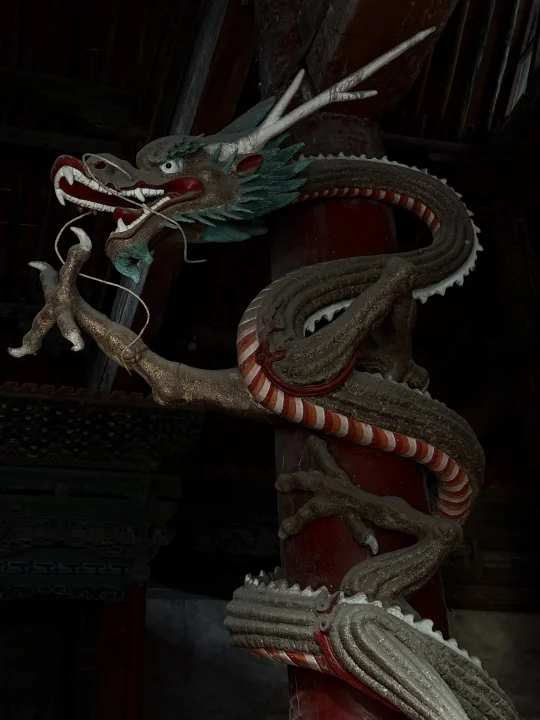 置身于圣母殿前,被那种无言的庄重瞬间攫住呼吸。北宋的匠人早已退场,而殿角的风铃、檐上的琉璃、侍女像眉宇间欲语还休的神情,仍将当时的虔诚与匠心,完整地存封于此。时间仿佛在此停步,让我在静默中,与这座建筑完成了一场横跨千年的对视。