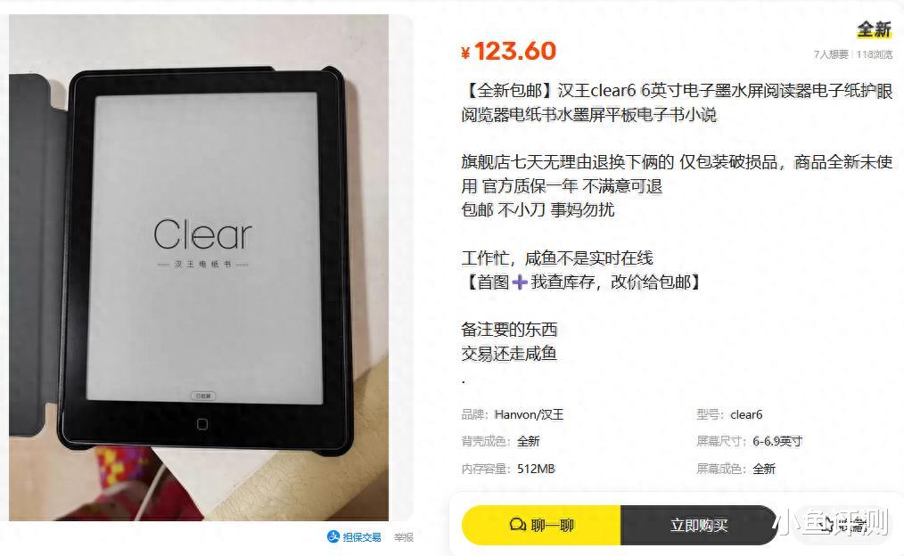 老铁们,问你个问题:你愿意为“纯粹阅读”这件事,花多少钱?是动辄上千的最新款,还是泡面盖经典款?今天我在二手鱼漫游时,被一个价格死死地钩住了目光——123元,包邮,一台全新的汉王Clear 6墨水屏阅读器。说实话,这价钱让我愣了好几秒,脑子里第一个蹦出来的词就是:不讲武德。
