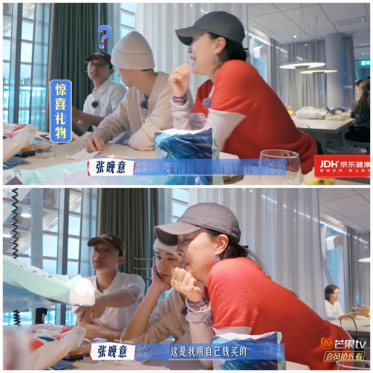哎呀,龚俊不得不承认 这次张晚意做得比他好, 李沁怎么也想不到 张晚意会这样做。 花少团每个人手拿 500克朗买礼物, 然后盲抽礼物。 张晚意先考虑团里女生居多, 选择T恤作为礼物时, 就特意选择了S码, 尽量让女生都能穿上。 但是更加暖心的名场面还在后面。 张晚意得知李沁的防晒霜 过安检时被没收了, 于是他用自己的零花钱, 特意给李沁买了一瓶防晒霜。 你看, 龚俊这次就没有张晚意那么暖心与细心了吧, 没有想到给李沁买防晒。 哎呀, “大哥”加油哦, 有点粗心哦。 李沁也做得不错, 第二天就穿上了张晚意送的T恤, 用上了他送的防晒霜。 她用这样的方式表达对张晚意 满满的谢意与满意。 是呀, 对于送礼者最大的回馈, 就是把对方的礼物用上, 而不是摆在箱底落灰呀。