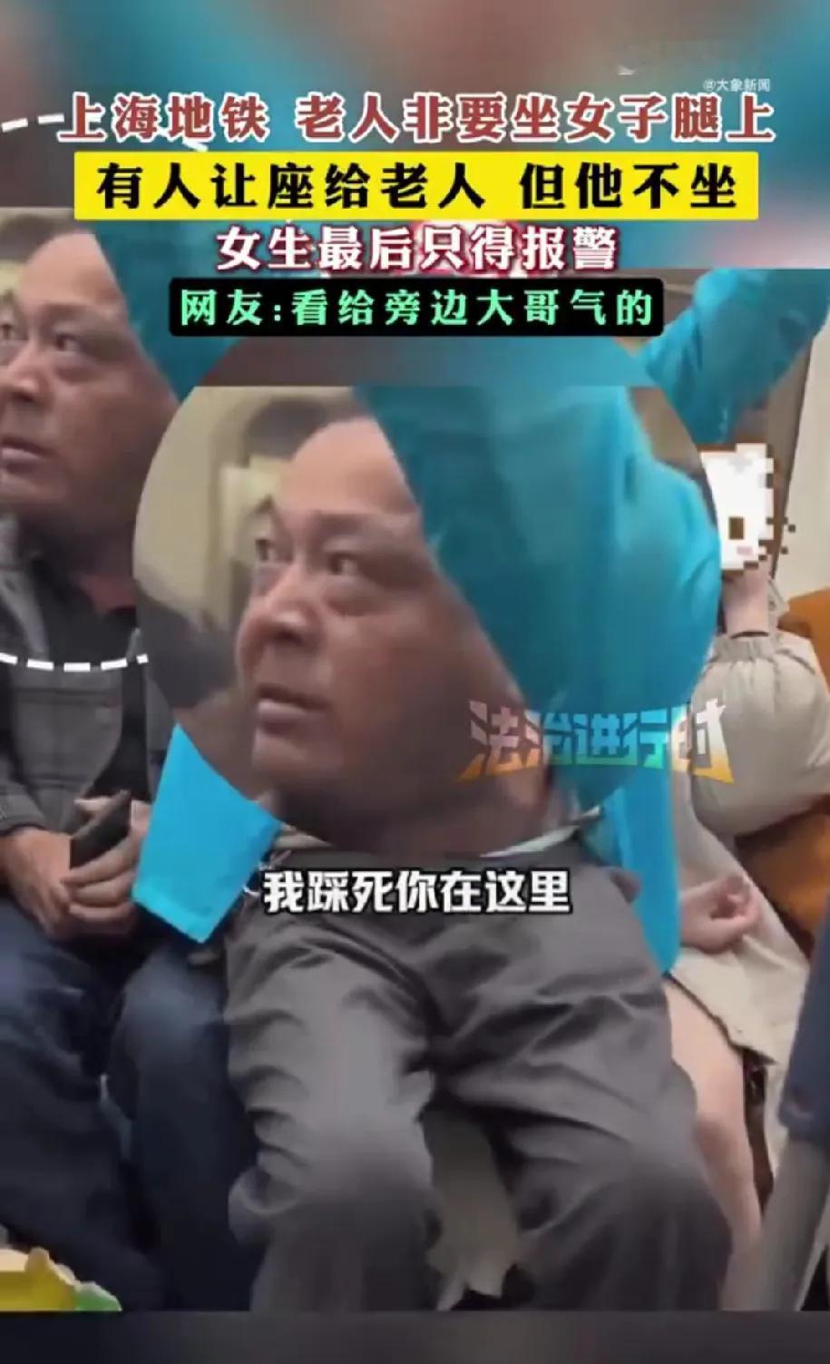 谁的爹,赶紧领回家吧? 有人让位不坐,非要坐女生腿上,隔壁大哥推开又坐回去,还不要脸得笑。接着老头将左手放在女生腿上,并开始用身体不断贴近、磨蹭对方。这不是明目张胆的猥亵吗? 后来民警来,带走了,这年龄大概率也只是劝导吧。这种人就应该停停退休金停停保险,再在小区宣传下,让他彻底闻名,这样就能治治这种人!太恶心了,为老不尊!