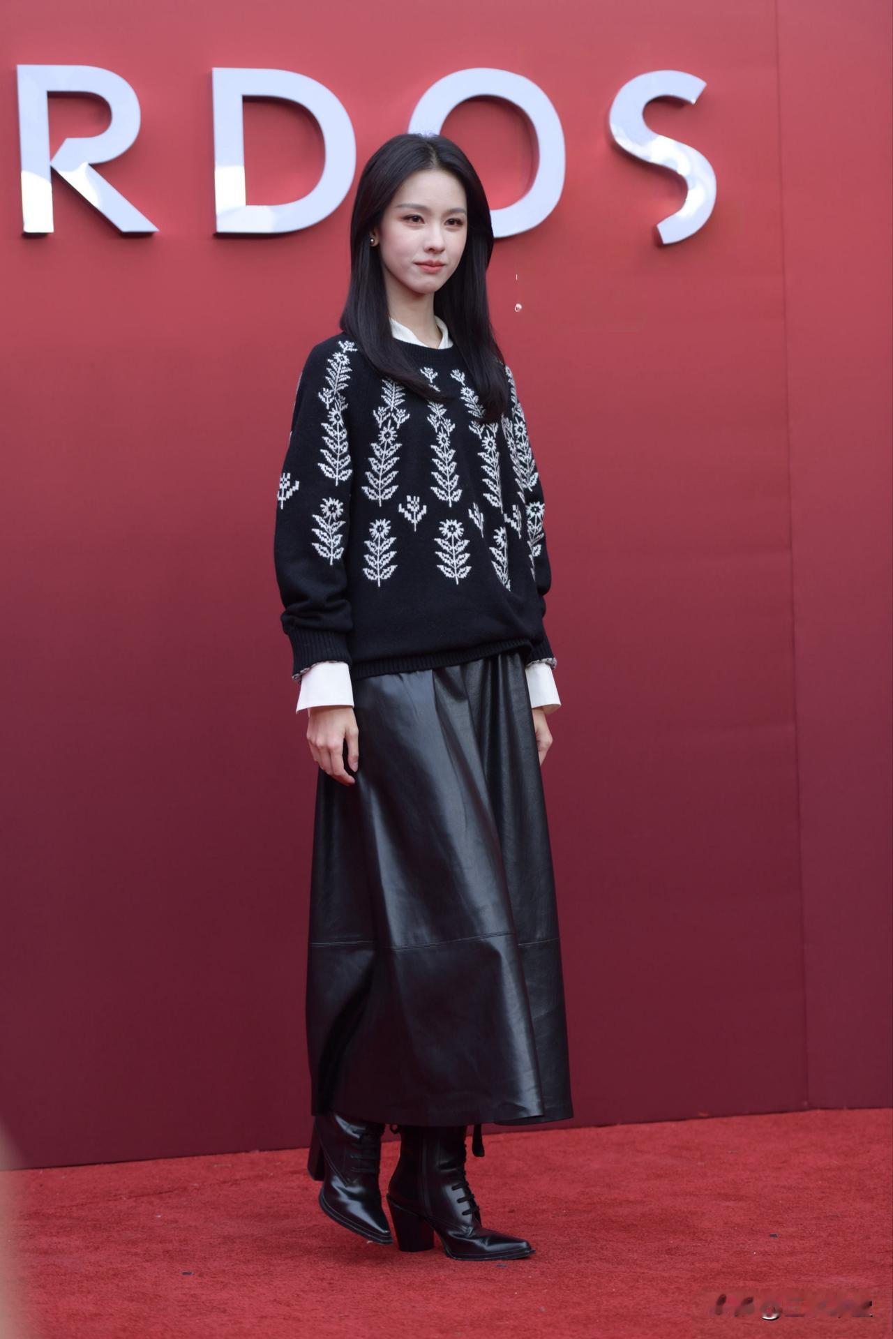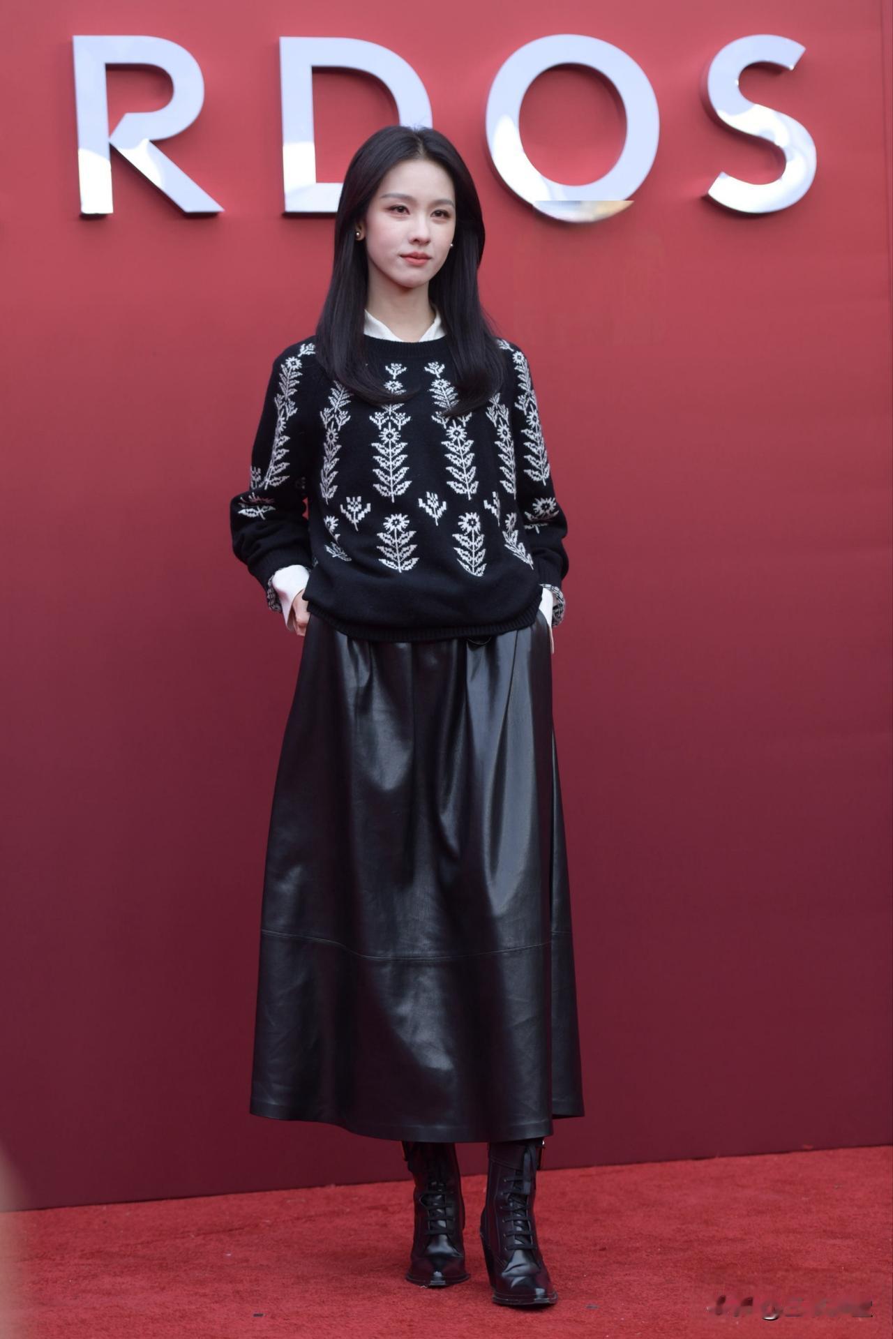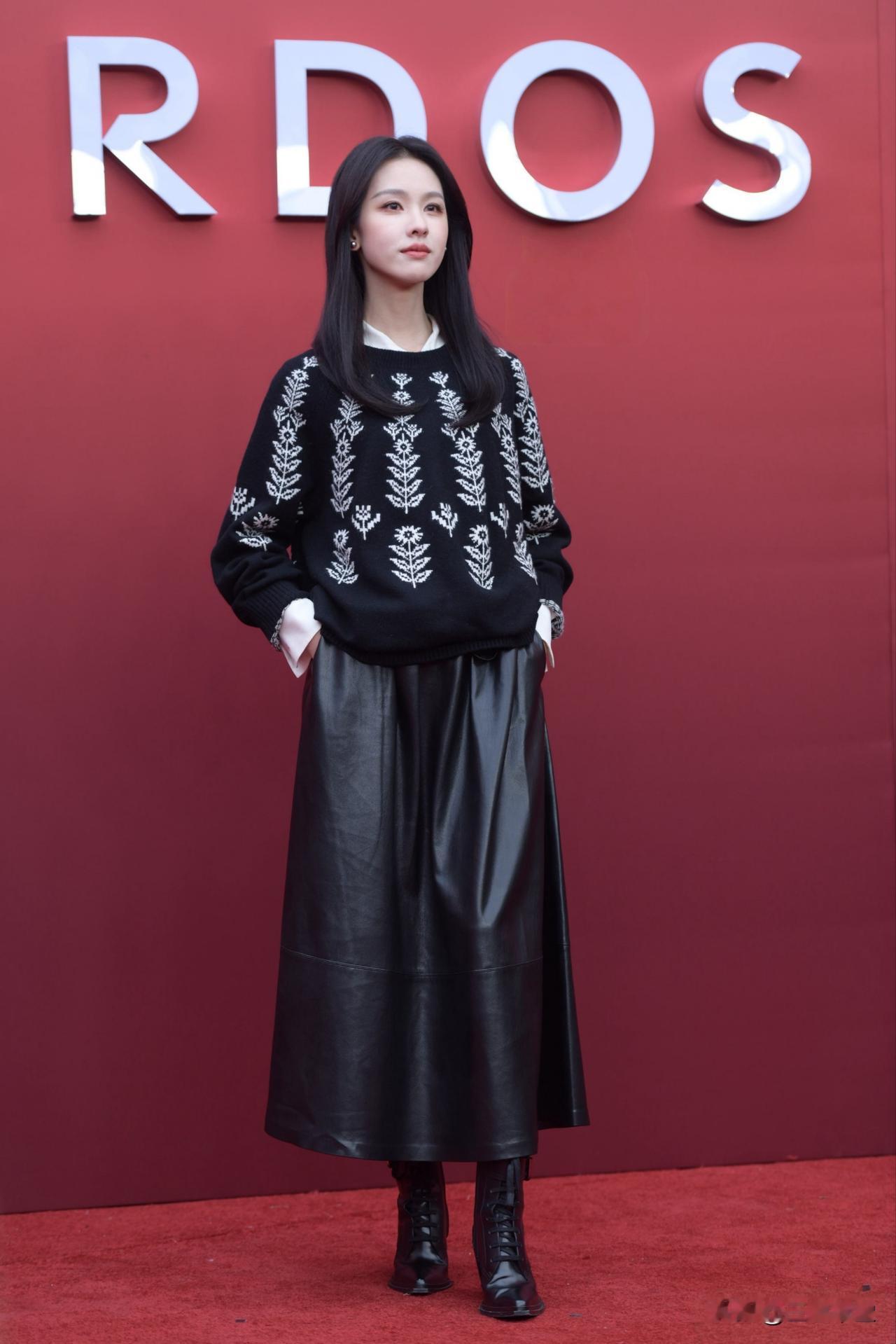 陈都灵今日线下活动生图,黑色皮裙都市感满满!天鹅颈好好看,今天太温柔优雅了吧!