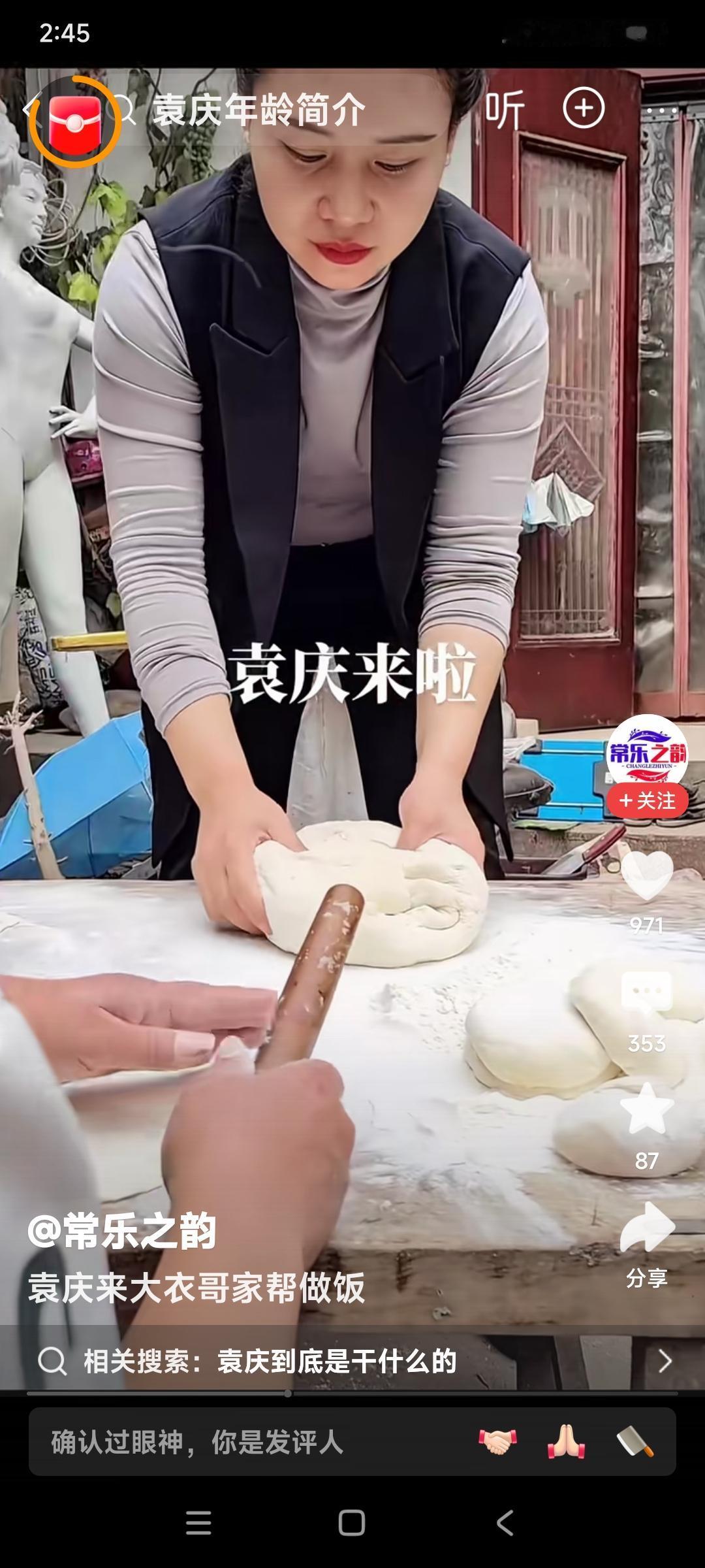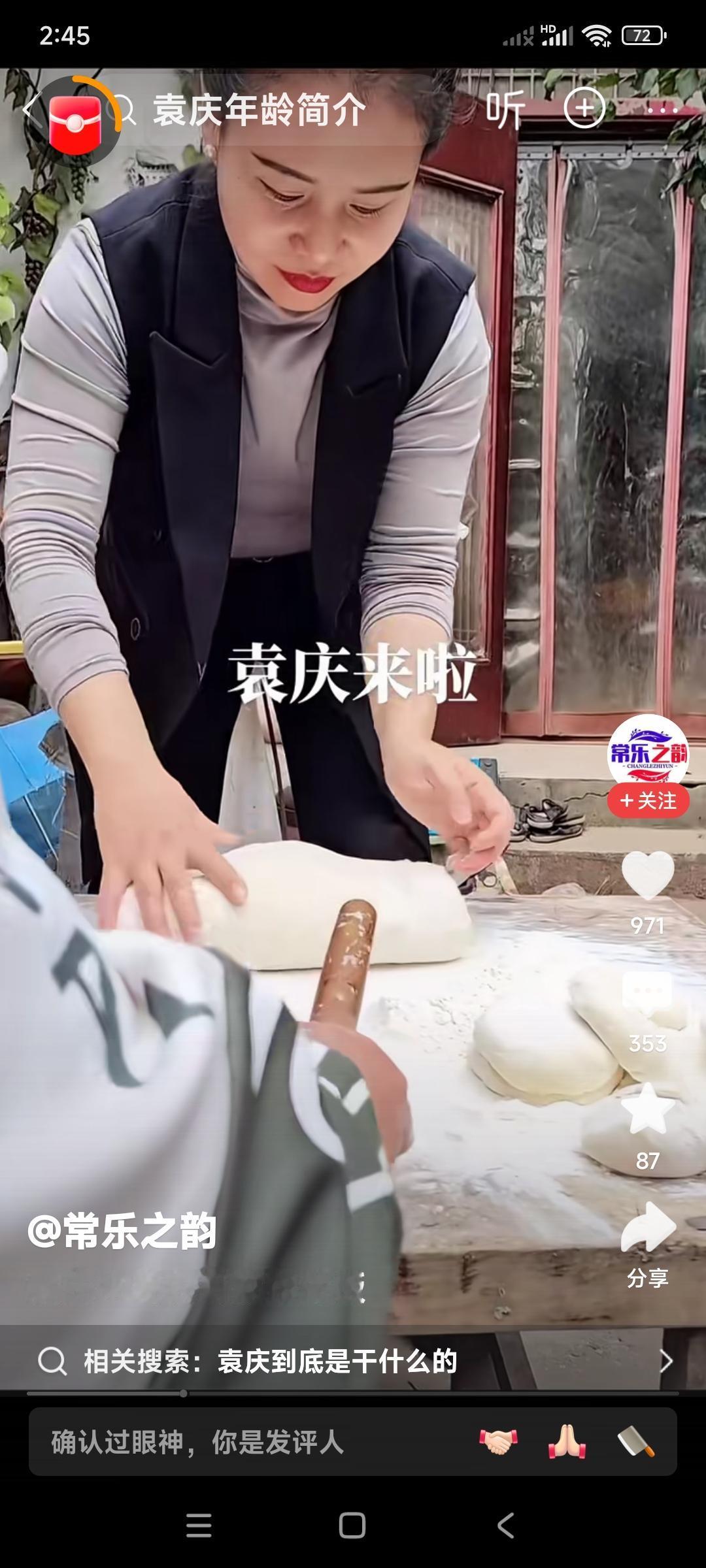 袁庆到了大衣哥朱之文家,就不把自己当外人。 看这和面的表情,嫣然把自己变成了朱之文家的主人。 和完了面又去烙饼。 朱之文在旁边看着袁庆干活,好开心哪。