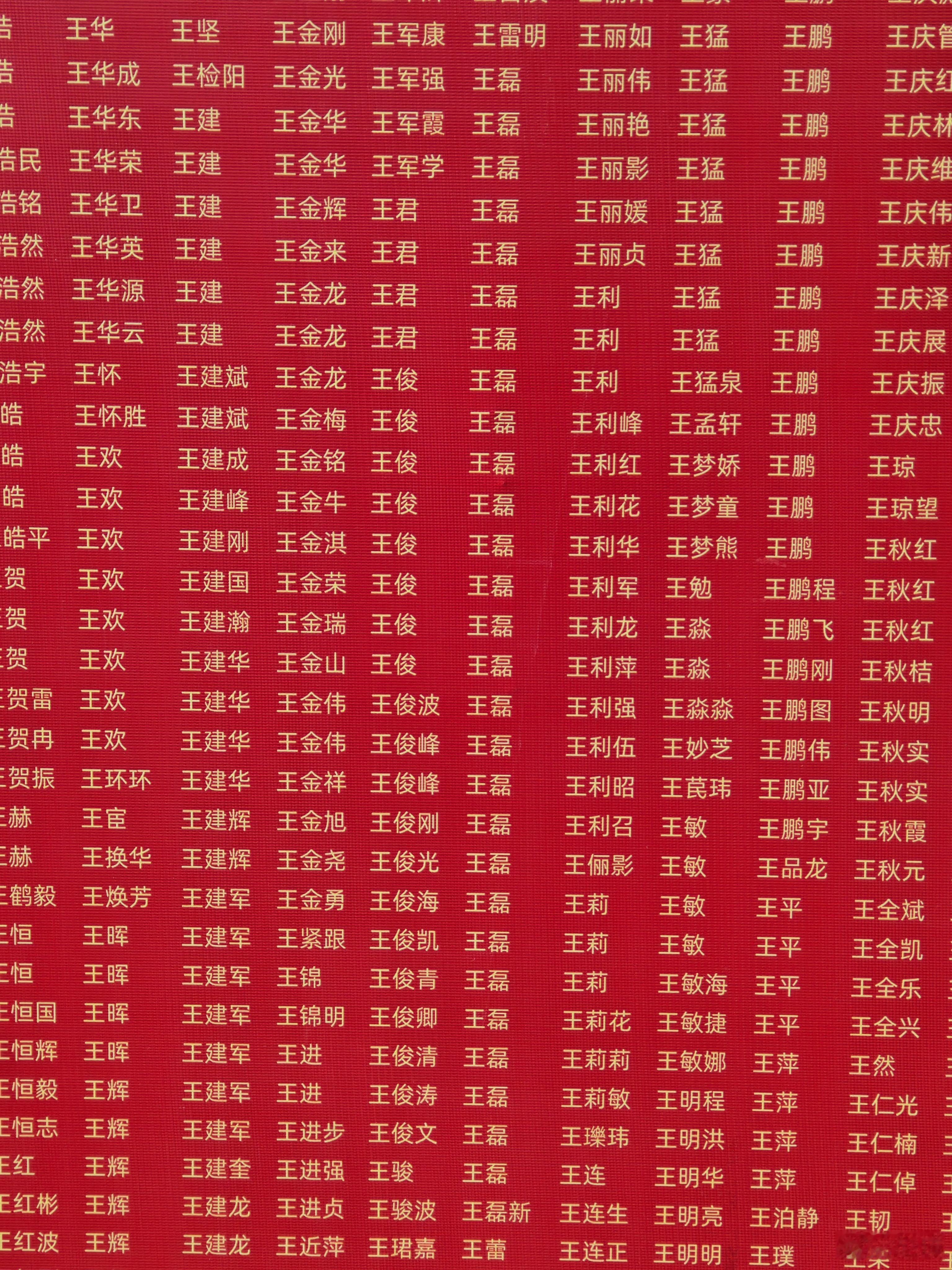 不知道全国最常见的名字是啥,单看这届北京马拉松最多的好像就是「王磊」和「王伟」了。