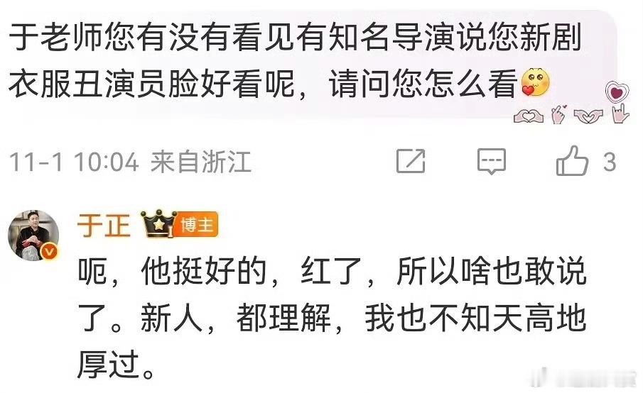 于正回应曾庆杰手滑:他挺好的,红了,所以啥也敢说了。新人,都理解,我也不知天高地