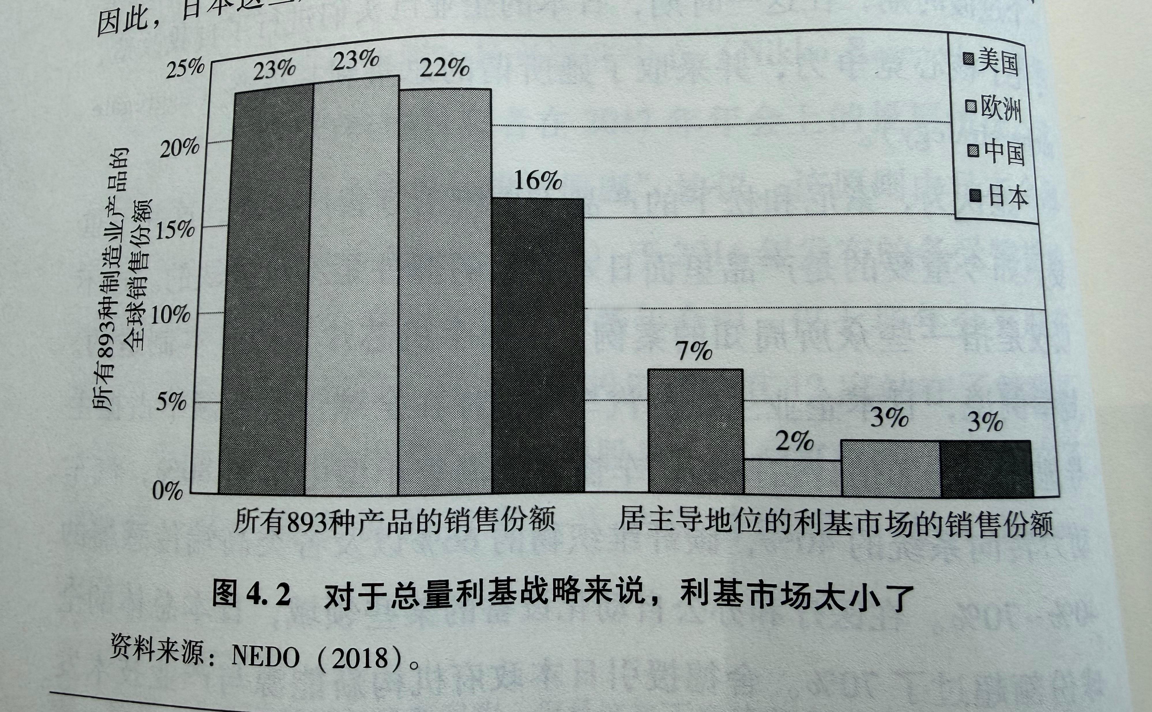 日本政府机构新能源与产业技术发展研究所(NEDO)编制的一份《日本亮点产品清单》,指出在2017年涉及各行各业的931种产品中,日本企业在309种产品的全球市场份额超过了50%,其中112种产品超过75%,57种产品达到100%。虽然每个细分市场的销售量看起来很小,但如果把它们加在一起,总量就相当大了。