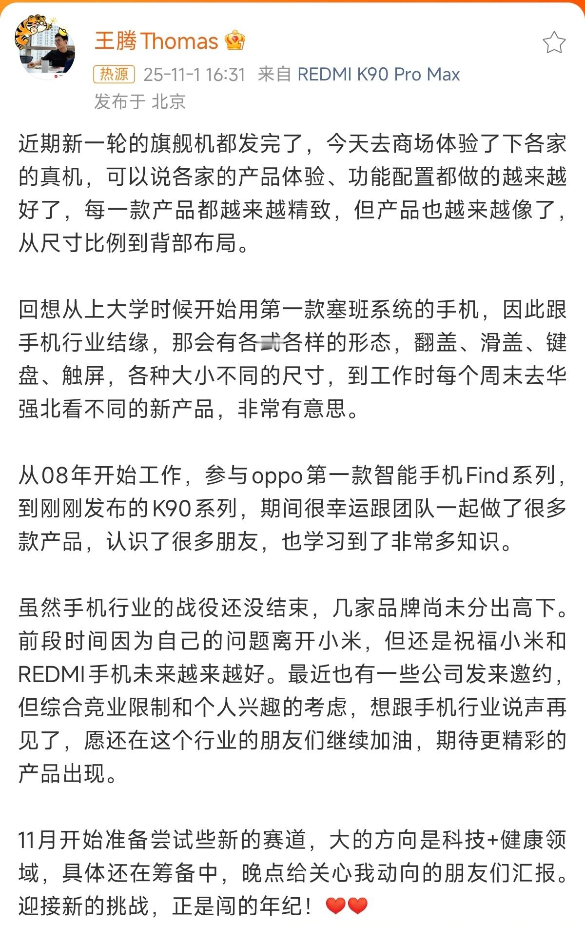 以前腾哥祝福过我们智羽回收生意兴隆,我现在也祝他一切顺利,越来越好[doge]王腾准备尝试新的赛道