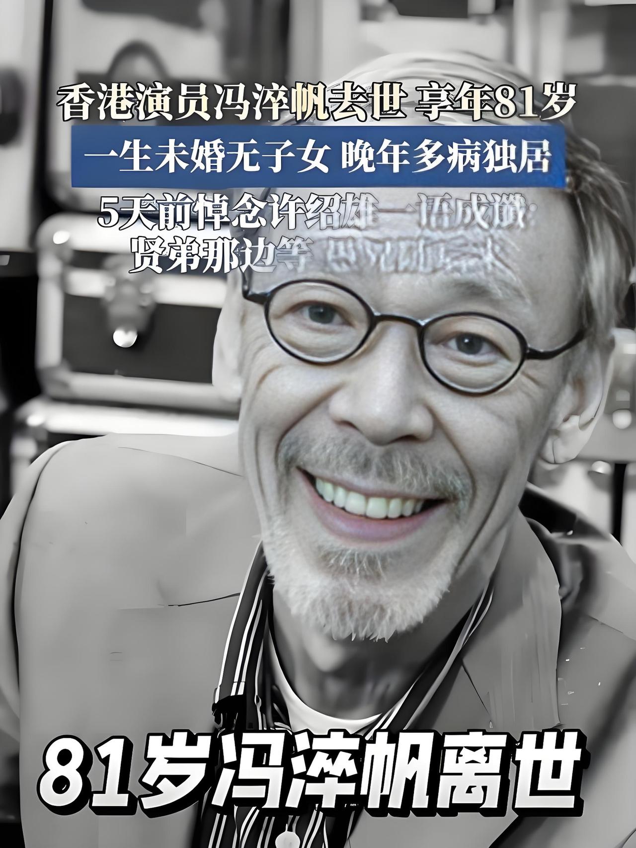 2025年10月31日晚,香港资深演员冯淬帆在台湾省去世,享年81岁。他以《五福星》系列“犀牛皮”、《精装追女仔》“刘定坚”等经典角色闻名,被誉为“幽默祖师”。其一生未婚,晚年独居对抗病痛,5天前悼念好友许绍雄之语竟成谶语,令人唏嘘。钟楚红 冯淬飞 冯淬巩 冯艺帆