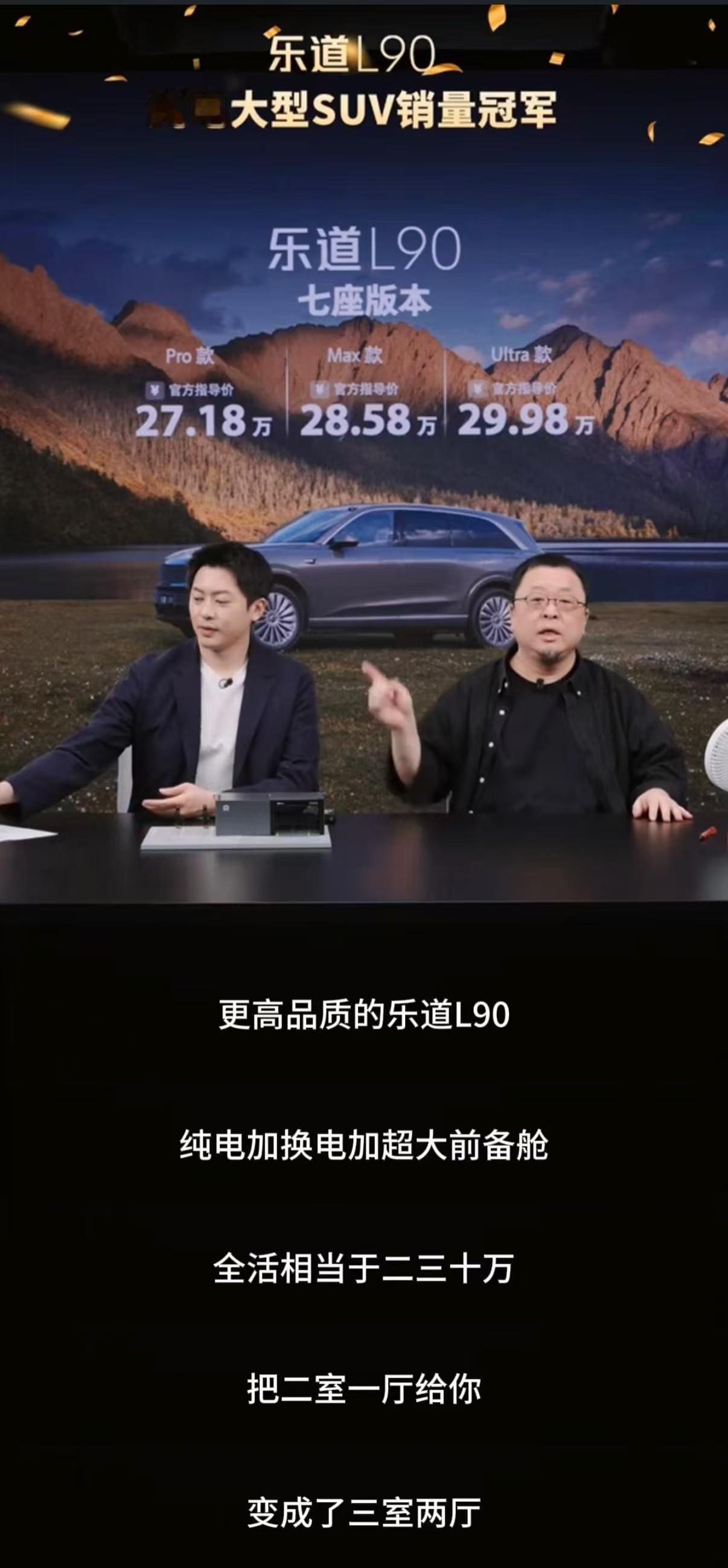 昨晚罗永浩在直播间直言:“中国新能源车做得好,30万的乐道L90技术配置顶尖,那些洋破烂卖不动了!”还强调“买大三排SUV就要买能装下6人10箱的”。