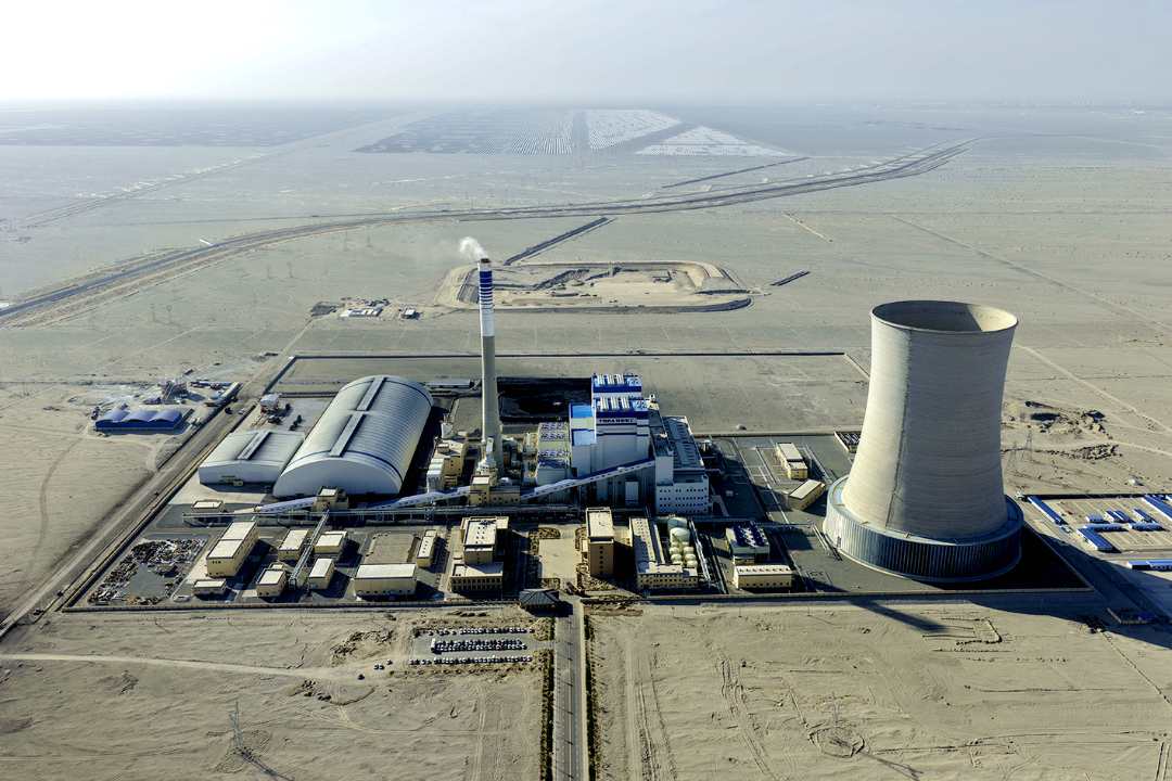若羌2x35万千瓦热电联产项目与远处中绿电400万千瓦光伏阵列“交相辉映。苏波摄