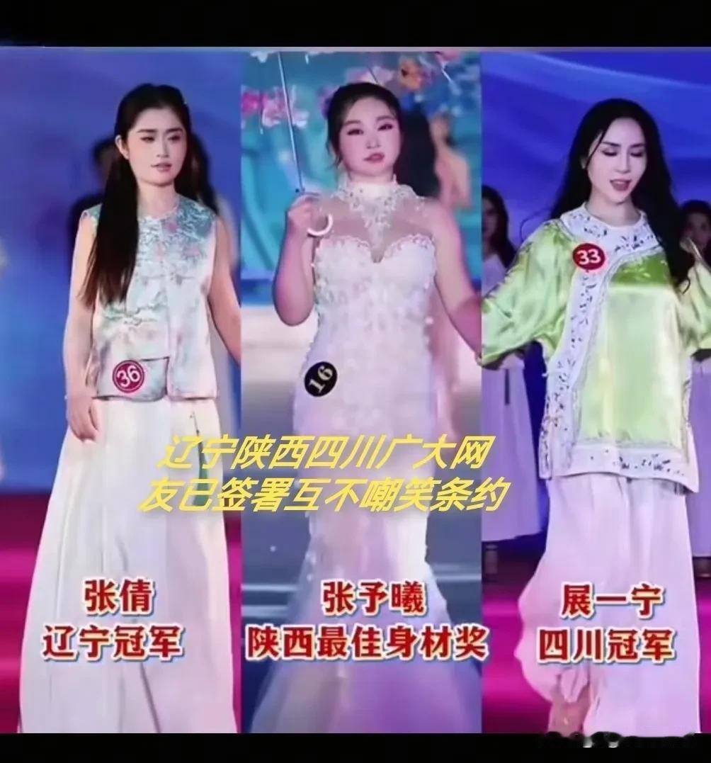 家人们速来吃瓜!此时不吃,等待何时?这届全国各赛区选美大赛简直是年度荒诞大戏,各赛区厮杀到飞起,暂定名次直接给我看傻了? 第四名(第一图):四川赛区冠军展一宁,江湖人称“展婶儿”,说是女版徐锦江分江毫不夸张。那张自带老相机滤镜的沧桑脸,直接把四川赛区那群水灵灵的小姐妹全比得没了镜头,这独特气质也是没谁了! 第三名(第二图):辽宁冠军张倩,外号“方脸战神”,泳装环节一站,活像王云从象牙山跳槽过来的,方得能当尺子用的脸蛋子在辽宁赛区一路横推,轻轻松松就出线了! 第二名(第三图):陕西冠军张予曦,网友赐名“胖墩曦”,活脱脱李逵本逵,凭着圆滚滚的身板自带冲劲,硬生生从陕西赛区杀出一条血路! 其实啊,大哥莫笑二哥,脸上的麻子一样多,这三位搁一块儿谁也别笑谁,全是“特色选手”。现在这二、三、四名吵得快把评论区掀了,妥妥的白热化阶段。陕川辽的网友怕吵急眼伤和气,干脆签了“互不开涮公约”,主打一个文明唠嗑,慢慢掰扯名次归属。 说真的,要是没这四位撑场面,估摸着这四个赛区的比赛都没法开起来,毕竟话题度全靠她们拉满了!甚至有网友扒出内幕,说这四场比赛搞不好是这四位选手自家出资办的?不然哪能这么“一枝独秀”,把“选美”办成“自家秀”啊! 至于第一名,那真是毫无悬念,直接锁定——云南昆明的赵灵儿拿下总冠军! ——第一名(第四图):华南总冠军赵灵儿,地府直接封了“地府形象大使”,主打一个吓你没商量! 必须恭喜赵灵儿!就凭那双阴间白眼、西伯利亚寒流冻过的僵硬脸、假得能反光的韩式锥子鼻,实力绝对碾压全场,这冠军拿得一点争议没有!我提议,必须把掌声拍烂在公屏上,这波“钞能力”加持的冠军,属实让人大开眼界!